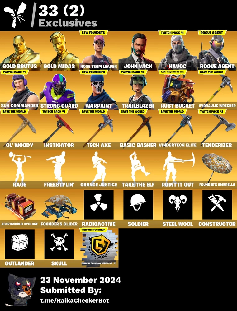 [PC] 127 skins | OG STW | Gold Brutus | Gold Midas | John Wick | Havoc | Rogue A