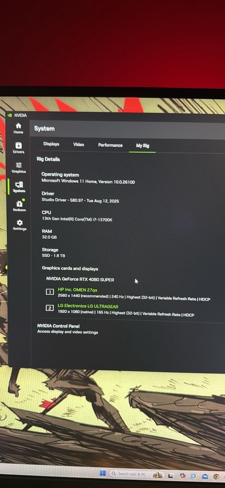 Graphics Processing Type: Dedicated Graphics RAM Size: 32 GB GPU: NVIDIA GeForce 4080 super Color: Black Maximum Resolution: 1920 x 1080 Manufacturer Warranty: 1 Year Features: Bluetooth Brand: omen Connectivity: HDMI, DisplayPort Processor: Intel Core i7 13th Gen. Processor Speed: 5.4 GHz Storage Type: SSD (Solid State Drive) Operating System: Windows 11 Home Most Suitable For: Gaming Screen Size: 27 in