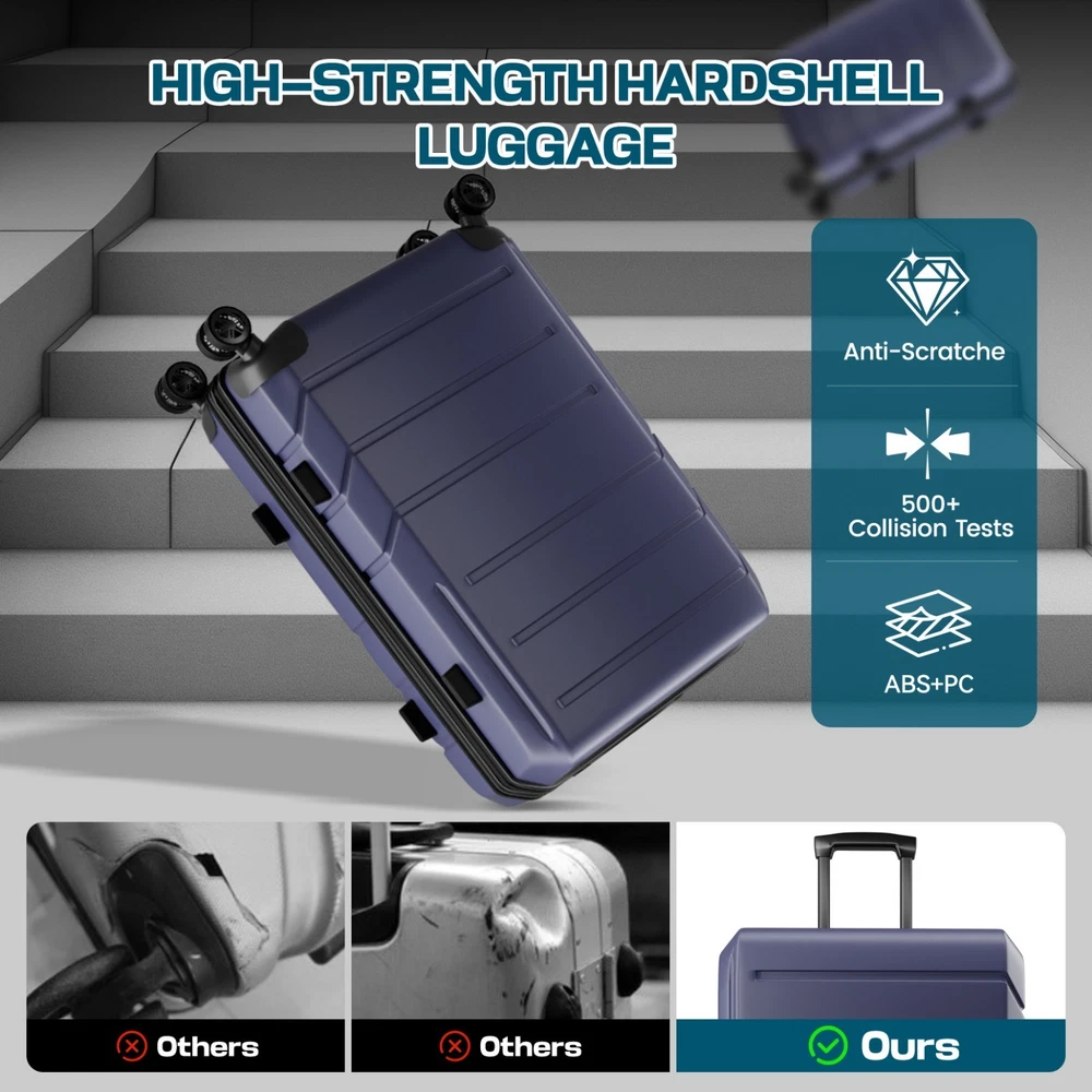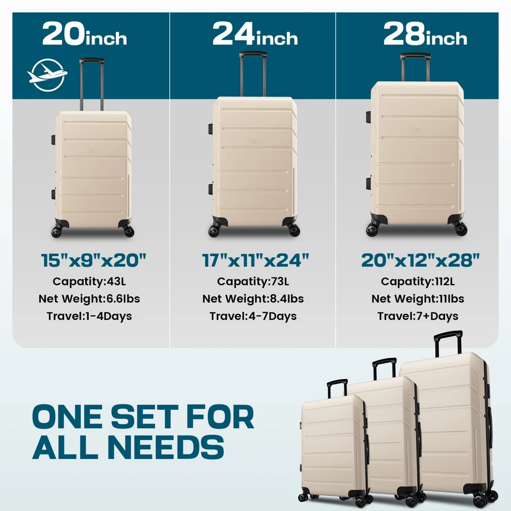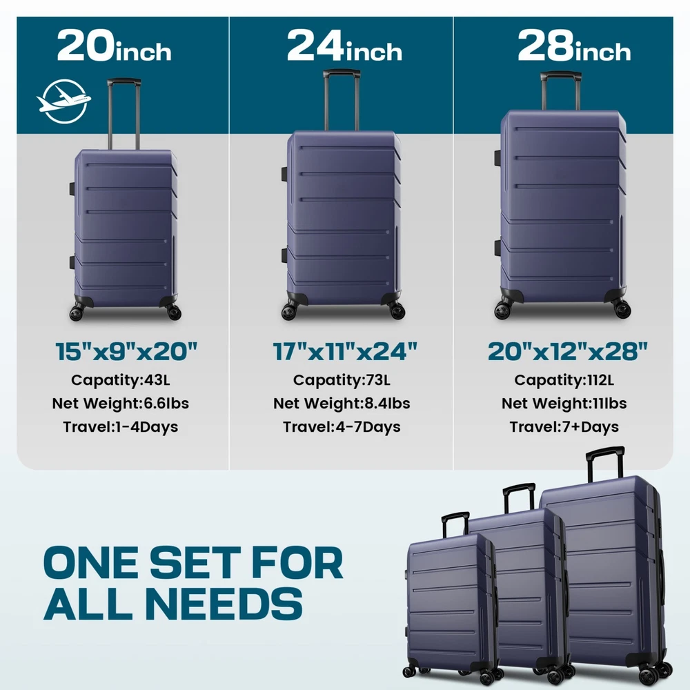 HOTEEL Luggage Set 3 Piece Hardshell ABS+PC Carry on Suitcase Dual-Spinner Wheel