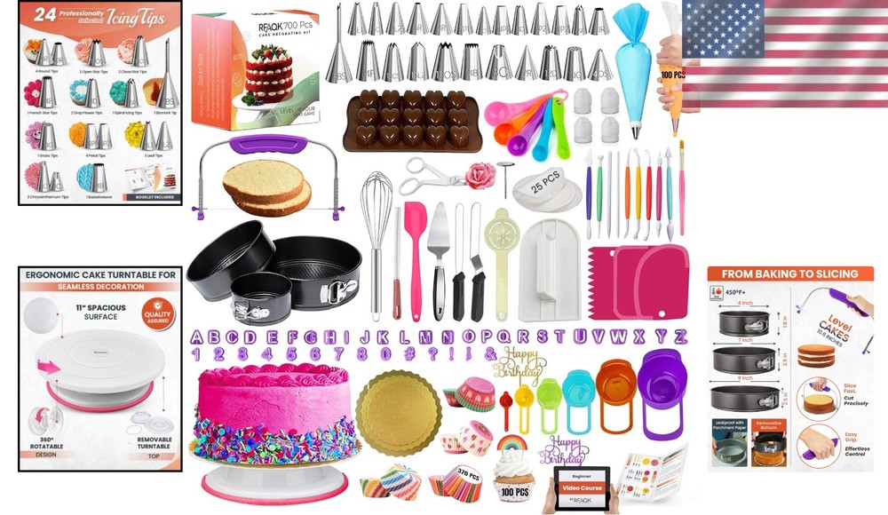 PCs Cake Decorating Kit with Baking Supplies - Cak ‹ › ‹ › ‹ › ‹ › ‹ › ‹ › ‹ › ‹ › ‹ › -Piece Cake Decorating Kit Unleash your inner pastry chef with the ultimate baking gift toolset that sets the foundation for spectacular desserts! Our comprehensive -piece cake decorating kit has everything you need to elevate your baking experience to a new level of elegance and artistry. Features: Includes 9, 7, and 4-inch springform pans with non-stick surfaces to ensure easy removal and perfect cheesecakes. 25 Parchment paper liners and 100 cupcake toppers for decorative flair. 24 numbered icing tips and versatile couplers for precision decorating. 3 cake scrapers and a cake leveler for creating flawless layers. A revolving food-grade turntable stand with a non-slip base for easy decorating and serving. An eBook guide filled with cake recipes and decorating tips, delivered right to your inbox. Benefits: Unlock your cake decorating potential with diverse tools for every baking need. Achieve professional-quality results without the need for prior experience! Enjoy simplified baking with springform pans that produce perfect cheesecakes every time. Create intricate icing patterns on cakes, muffins, and cookies with ease. Designed with health and safety as a priority, adhering to the highest US food-grade standards. Hassle-free satisfaction guarantee—choose a replacement or receive a refund if not fully satisfied. Why Choose Our Cake Decorating Kit? This -piece cake decorating kit is not just a collection of tools; it is an invitation to explore your culinary creativity. Each item has been thoughtfully selected to inspire bakers of all levels—from novice to expert. With easy-to-use gear like our cake server, silicone spatula, and egg separator, baking becomes a delightful adventure rather than a chore. Let your imagination flourish at birthdays, weddings, and celebrations. Don’t wait to transform your baking into exceptional artistry—order your ultimate cake decorating kit today and let the magic of baking unfold in your kitchen! Shipping Free & Fast Shipping - We offer free shipping to most of the USA with a normal delivery time of 3-10 business days. However, due to various situations, additional delivery time (up to 3 weeks) may be required for some items. Alternative Carriers - We may use alternative carriers (e.g. USPS, FedEx, UPS, etc.) to ensure your package arrives safely and on time. Due to the use of multiple carriers, we are unable to provide a tracking number automatically. Handling Time - Orders are processed and shipped within 1-5 business days of receiving cleared payment. Shipping Restrictions - Shipping to Alaska, Hawaii, Puerto Rico, Guam, and other US territories may incur shipping charges or delivery restrictions. Please contact us before ordering, or your order can be refunded/cancelled. State Restrictions - There may be restrictions based on your state of purchase. For example, certain items may not be shipped to California due to state regulations. Contact for Tracking Updates - If you require tracking updates or have any concerns about the delivery of your order, please feel free to contact us, and we will be happy to assist you. Return 30-Day Hassle-Free Returns - We want you to be completely satisfied with your purchase. If you are not, you can return the item within 30 days of receiving it for a full refund or exchange. Easy Return Process - To start a return, simply contact us and we will provide you with a prepaid return shipping label and detailed instructions. Restocking Fee - There are no restocking fees for returns. However, the buyer is responsible for return shipping costs if the return is not due to a seller's error. Refund Processing Time - Refunds will be processed within 5 business days of receiving the returned item in its condition. Payment We accept all major credit cards, PayPal, and Apple Pay for your convenience. Your payment information is secure and encrypted to ensure a safe and seamless transaction. Please complete your payment within 3 days of purchase to avoid any delays in shipping. Feedback Your feedback is extremely important to us. We strive to provide the best products and customer service possible. If you are satisfied with your purchase, please take a moment to leave us a positive review. If you have any concerns or issues with your order, please contact us before leaving negative feedback. We are committed to resolving any problems and ensuring your satisfaction. Contact Us If you have any questions or concerns, please feel free to out to our customer support team. You can contact us through the eBay messaging system. We are available Monday to Friday, 9:00 am to 5:00 pm EST, and we will do our best to respond to your inquiry within 24 hours. Buy it now and enjoy a pleasant shopping experience! Unit Quantity: 700 Material: Plastic,Silicone Features: Dishwasher Safe,Easy Clean,Easy to Clean,With Handle,Ultimate Baking Gift Tools,Easy to Bake in Springform Pans,E-book User Guide for Beginners Color: White Type: Cake Decorating Kit Number in Pack: 1 Number of Items: 360 Occasion: All Occasions Item Diameter: 11 in