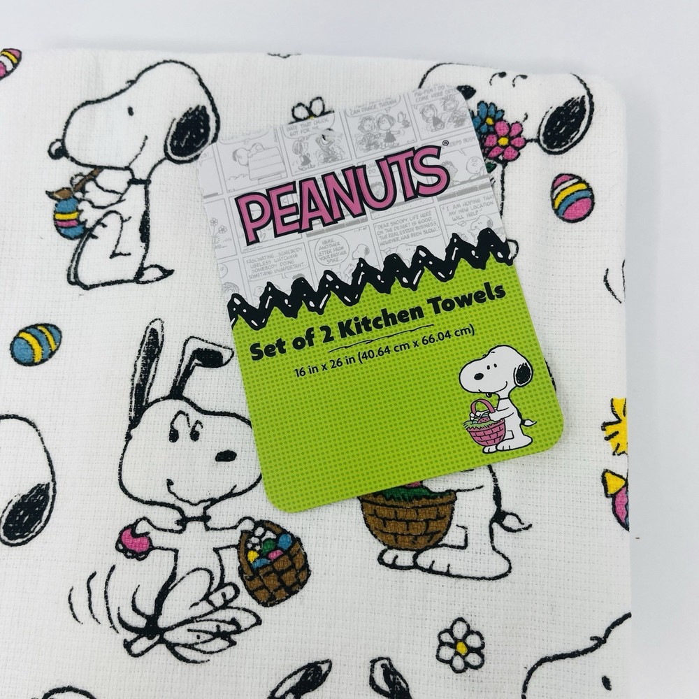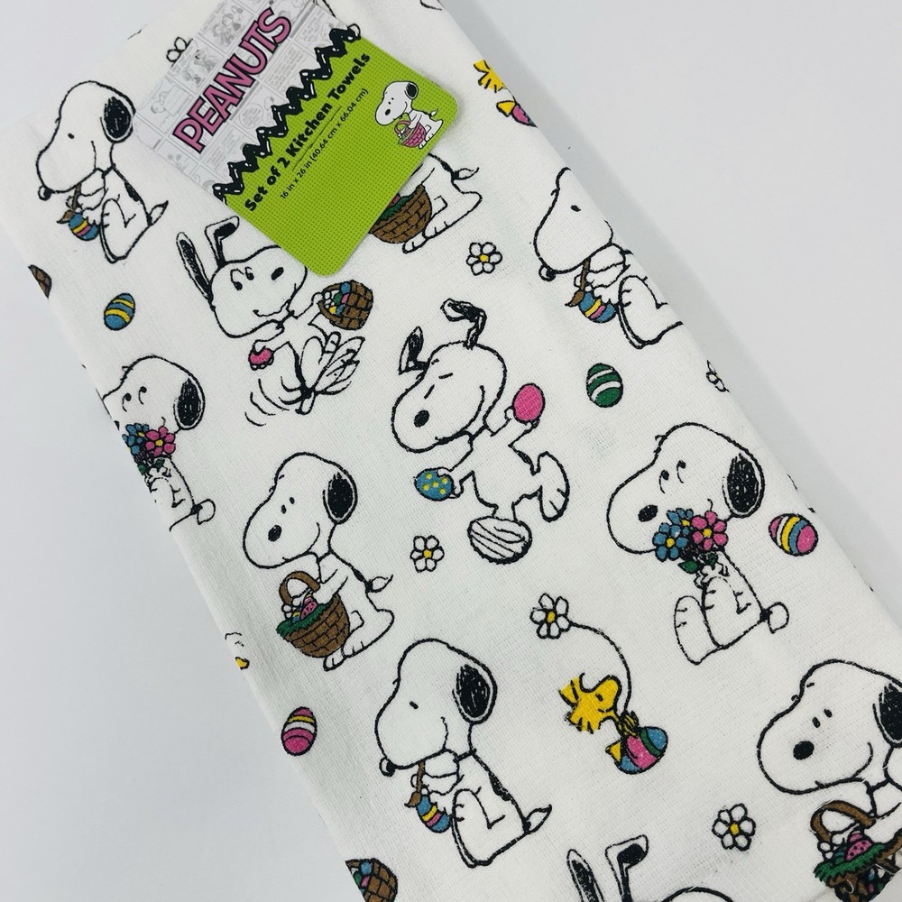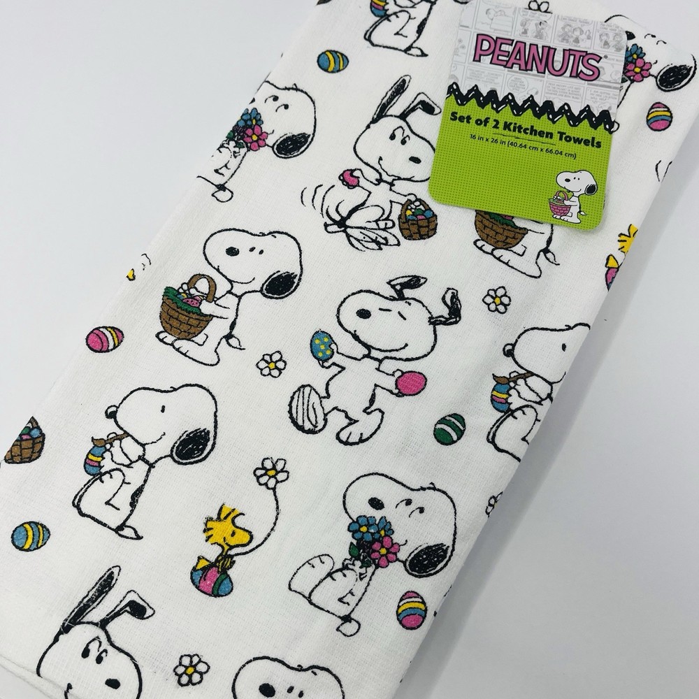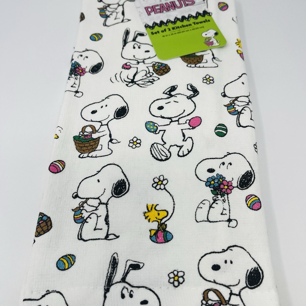 PEANUTS Snoopy 2 Pack Hand Kitchen Towels Easter Basket Eggs Woodstock NEW