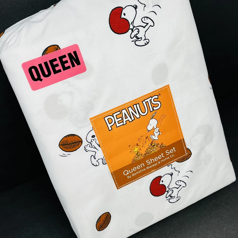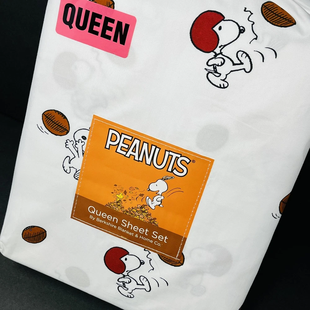 PEANUTS Snoopy QUEEN SHEETS SET Football Season Catching Kicking Autumn Fall NEW