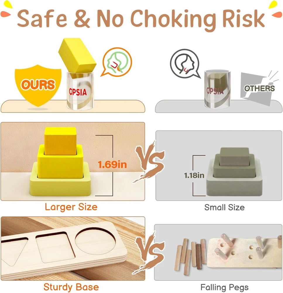 Enhances Cognitive and Creative Skills: This stacking toy for boys & girls includes 15 wooden blocks in 5 unique shapes and 5 vibrant gradient colors. Toddlers can stack the blocks by shape or color, fostering creativity, logical thinking, and fine motor skills as they explore different configurations. Versatile Play Options: In addition to traditional stacking, these Montessori stacking toys can also be used as dominoes, adding extra fun and variety to playtime. This multi-functional design keeps children engaged while promoting both physical and cognitive development. They are the perfect montessori toys for 1 2 3 year old toddlers. Safe and Durable Design: Made from natural, high-quality wood, the blocks have smooth edges and a sturdy construction. There are no small parts, loose pegs, or sharp edges, ensuring a safe play experience. Additionally, this learning toy for boys and girls aged 1 and up can also be used as a decoration. Ideal for Little Hands: The blocks are specifically designed with extended lengths to make them easier for small hands to grip and stack. This user-friendly design helps toddlers practice their hand-eye coordination and develop their grasping abilities. Perfect Gift for Toddlers: Suitable kids aged 1-3, this colorful sorting toy is a great gift for birthdays, holidays, Christmas, New Year or any special occasion. These educational toys provides both fun and learning, making it an excellent choice for parents and caregivers.