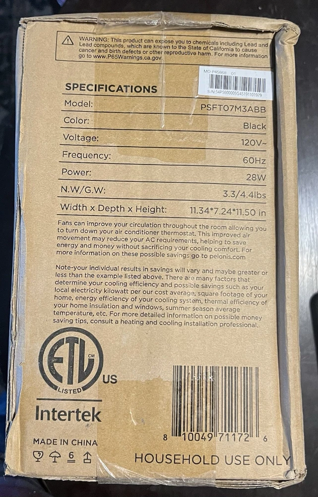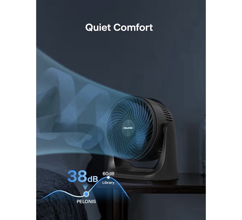 Assembly required: No Room: Any Room Room Type: Bedroom, Home Office Voltage: 120 V Features: Adjustable Tilt/Head, Quiet Operation Included Components: 1 * 7 inch Turboforce Fan Wattage: 28 w Shape: Round gtin13: 810049711726 Type: Table/Desk Electric fan design: Table Fan Customer Reviews: 4.9/5 Installation Type: portable Control Method: Touch Product Dimensions: 6.88"D x 10.82"W x 10.94"H Material: Plastic Power Source: ac Brand: Pelonis Number of Power Levels: 3 Model Name: FG18-24FP UPC: 810049711726 Batteries required: No Size: 7" Air Circulation Fan Suitable For: Indoor Is Cordless?: No Air Flow Capacity: 282.52 Cubic Feet Per Minute Blade Length: 7 Inches Item Weight: 3.31 pounds Style: 7 inch Air Circulator Main Power Connector Type: NEMA 1-15P or NEMA 5-15P Speed: 10.36 Feet Per Second Number of Speeds: 3 Recommended Uses For Product: Air Circulation, Cooling Switch Type: Push Button Number of Blades: 3 Country of Origin: United States Control Style: Analog/Mechanical Manufacturer: Pelonis Operating Sound Rating: 38 Decibels Color: Black Power: 28W Special Feature: Lightweight Efficiency: 5.65 cubic feet per minute per watt Indoor/Outdoor Usage: Indoor