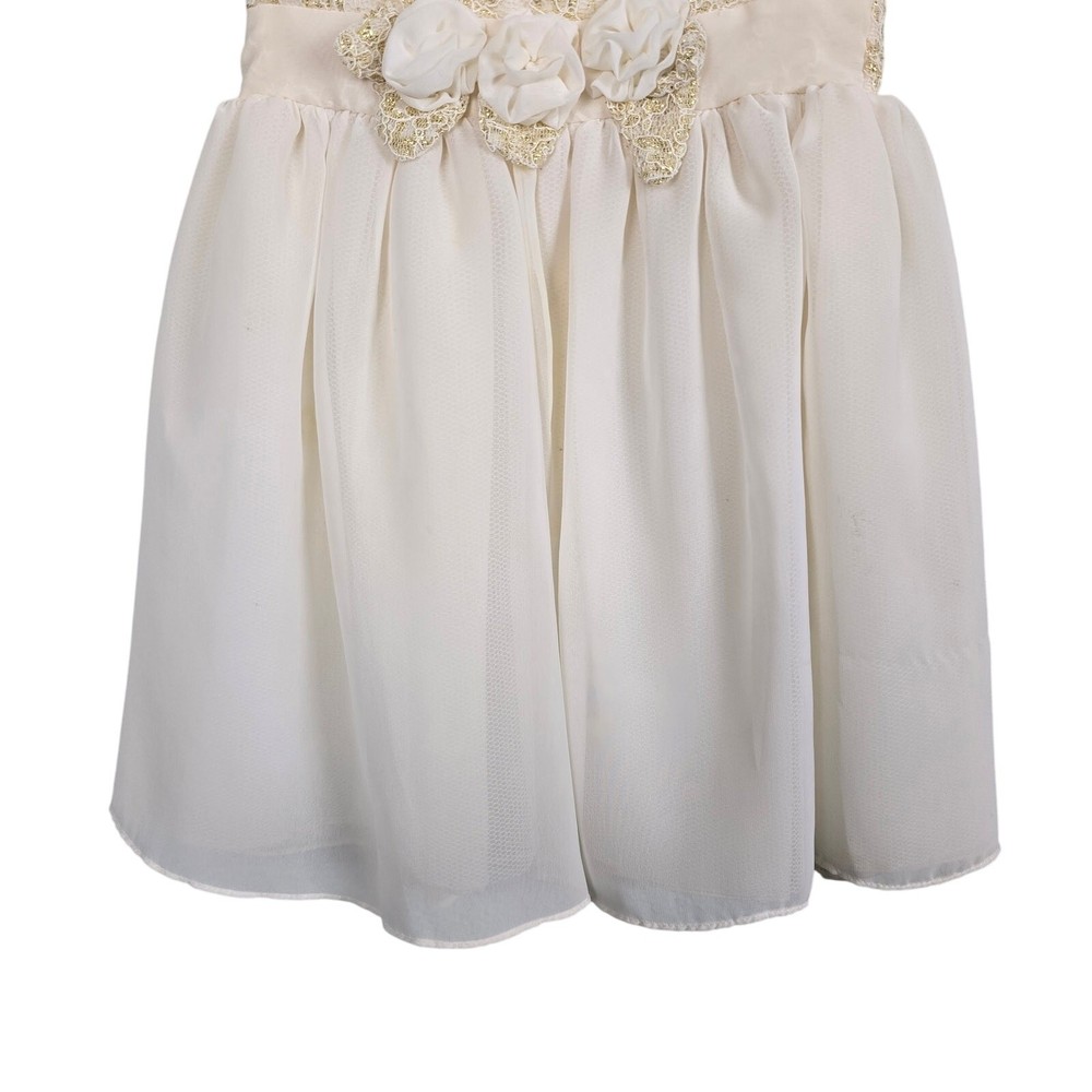 PENELOPE MACK Toddler Girls Gold Beige Dress Floral Embellishments Lace, Sz 2T