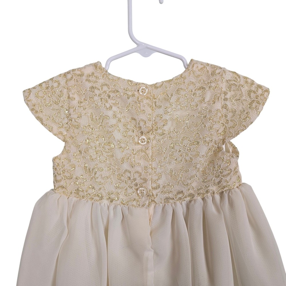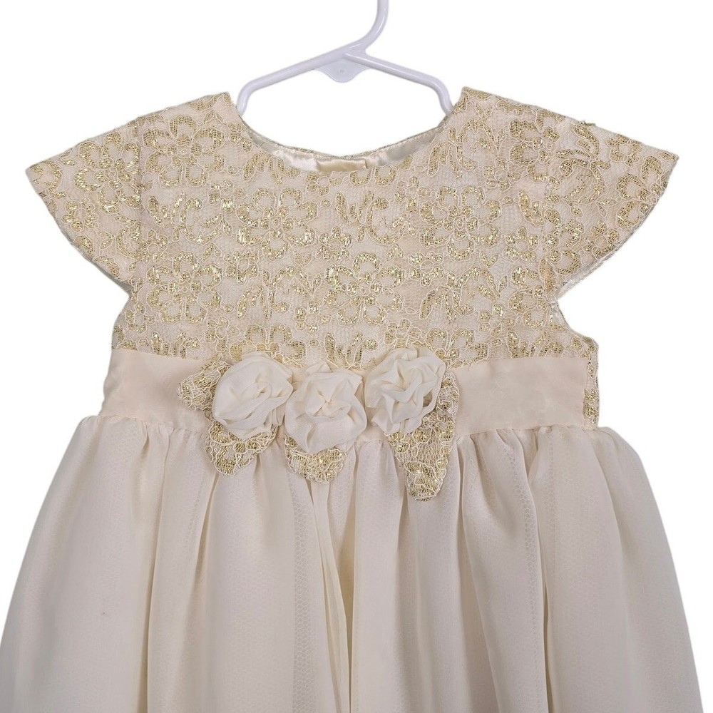 PENELOPE MACK Toddler Girls Gold Beige Dress Floral Embellishments Lace, Sz 2T - Gold & beige toddler dress with lace and floral embellishments at the waist - 3-button closure on back - There is a bit of pulling on bottom part of dress that blends in when worn. Please see pictures for more accurate description. Only worn twice. In good preowned condition. No tears or stains. If you have any questions please do not hesitate to ask. Offers welcome. Ships same/next day! I106
