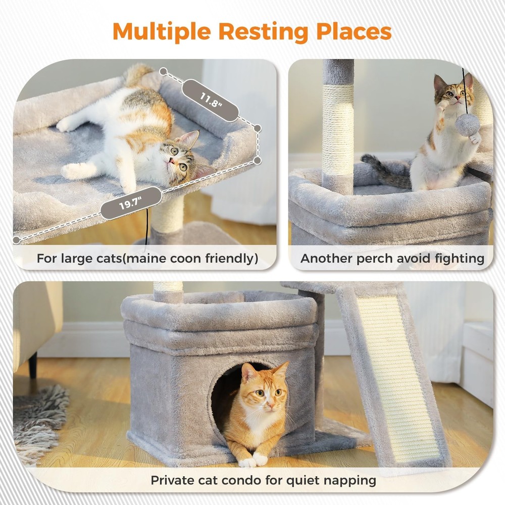 PEQULTI Small Cat Tree Tower for Large Adult Cats with Wide Top Perch, Private Cat Condo and Sisal Scratching Post&Pad for Indoor Cats, Gray Product Details Color: Grey Brand: PEQULTI MPN: AM52-AMT0326GY UPC: Does not apply EAN: Does not apply Product Dimensions: 12.2"L x 25.6"W x 19.3"H Breed Recommendation: All Breed Sizes Specific Uses For Product: Scratching Recommended Uses For Product: Indoor Material: Engineered Wood, Faux Fur, Sisal Product Dimensions ‏ : ‎ 12.2 x 25.6 x 19.3 inches; 13.82 Pounds Item model number ‏ : ‎ AM52-AMT0326GY Date First Available ‏ : ‎ July 17, 2025 Manufacturer ‏ : ‎ AM52-AMT0326GY Best Sellers Rank: #15,570 in Pet Supplies (See Top 100 in Pet Supplies) #85 in Cat Trees #85 in Cat Trees Customer Reviews: 4.4 4.4 out of 5 stars 47 ratings Item Weight: 13.79 pounds Manufacturer: AM52-AMT0326GY Item model number: AM52-AMT0326GY Date First Available: July 17, 2025 Item Package Dimensions L x W x H: 17.04 x 13.19 x 7.4 inches Item Dimensions LxWxH: 12.2 x 25.6 x 19.3 inches Item Weight: 6.27 Kilograms Brand Name: PEQULTI Target Audience Keyword: Cats, house-cats Directions: All Life Stages Model Name: AM52-AMT0326GY Color: Grey Material: Engineered Wood, Faux Fur, Sisal Care Instructions: Dry Clean Only Breed Recommendation: All Breed Sizes Included Components: Bed, Dangling Ball, Instruction Manual Specific Uses for Product: Scratching Cozy and Widened Perch: 2 nicely cushioned and an extra-large cat perch(20''x12'') with raised edge offers prime relaxing spot for your fur babies to lie down or sit on to look out the window. The top perch is designed big enough to hold 2 kittens at the same time so that these 3 good friends can enjoy a nice sleeping or playtime together Better Optimization: This small cat tree for indoor cats is upgraded from our PEQULTI popular cat tower with more functions and stablity. And there are three colors to choose to fit your room decor as you like Fulfill Scratching Needs: Euipped with 2 durable sisal covered scratching posts and a wide sratching pad, your furry friends will get entertainment in an unlimited time. And the cat tower can efficiently keep naughty cats away from your furniture Safe and Stable: Reinforced base plate and well-balanced design make sure your cats can easily and safely leap on or off this small but sturdy cat tree for large cats. What's more, a scratching pad also provides an additional 50% stability Easy to Install and Nice Looking: Its attractive look will match with any room in your house like a piece of nice pet furniture rather than a jungle gym. All the necessary tools are included, just following the instruction step by step. Its super easy to set it up. Pls feel free to contact us PEQULTI if you have question about this item