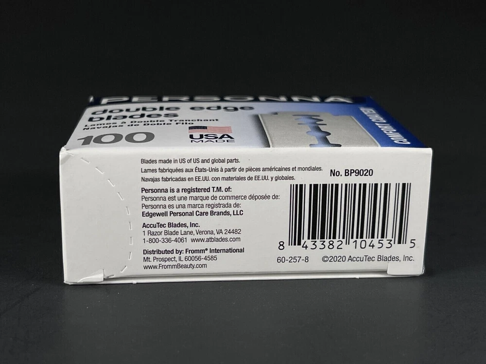 PERSONNA Barber Comfort Coated Double Edge Razor Blades BP9020 | 100pk Personna Double Edge blades are made of high quality stainless steel, and are electronically controlled throughout the grinding and honing process to help provide smooth shaving performance and comfort. 100 paper-wrapped blades per pack extra sharp stainless Individually Wrapped Smooth and Safe Shaving 1 packs of 100 blades, 100 blades total Use for shaving face, neckline, sideburns Made in USA
