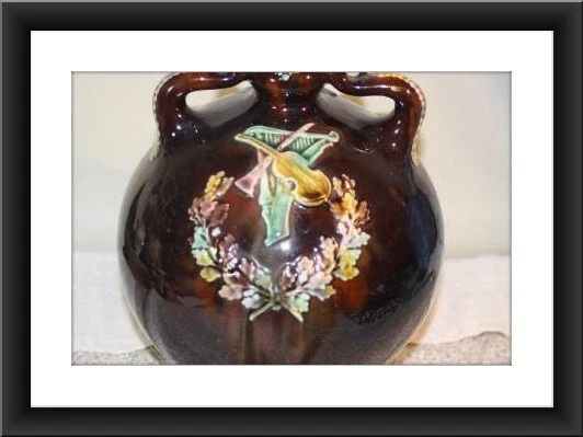 PETERS AND REED ART POTTERY LARGE VINTAGE TWO HANDLE VASE GLAZE VIOLIN HARP OBOE PLEASE READ DESCRIPTION AND LOOK AT MULTIPLE PHOTOS THAT ARE BELOW! IF YOU ARE USING AN IPAD, PHONE, IPOD YOU MUST USE CLASSIC MODE TO SEE PHOTOS! MOST ITEMS ARE STORE ITEMS, SO YOU CAN PURCHASE AT ANY TIME! (CLICK ON ANY PHOTO TO ENLARGE PHOTO) DESCRIPTION: PETERS AND REED ART POTTERY LARGE VINTAGE TWO HANDLE VASE GLAZE VIOLIN HARP OBOE Violin, harp and oboe with multi colored wreath, nice scroll two handles, larger piece, 9 x 6 1/2 inches ONE BID IS ALL IT TAKES! I t's the international buyer's respons ibility to pay customs fees, duties, import taxes, and related charges. CAN COMBINE SMALLER ITEMS Please make payment through Paypal within 3 days at end of auction. If other method is wanted please contact me. Thank you IF ITEM IS DAMAGED IN SHIPMENT, PLEASE CONTACT ME BEFORE LEAVING FEEDBACK. I CAN NOT CONTROL HOW THE POST OFFICE HANDLES THE MAIL! PICTURES WILL NEED TO BE EMAILED TO ME AND I WILL FILE A CLAIM WITH THE POST OFFICE. YOUR REFUND NORMALLY TAKES 3-4 WEEKS, SO PLEASE DO NOT FILE A CLAIM WITH EBAY ONCE THE CLAIM IS FILED WITH THE POST OFFICE, THIS WILL ONLY DELAY YOU GETTING YOUR MONEY BACK!!! Shipping will be made by the most economical method possible. IF AN ITEM IS VERY LARGE, I HAVE TO CHARGE ADDITIONAL FOR THE PACKING (BOX, PEANUTS, PAPER, TAPE, etc). It costs considerably to mail out a large package and the sellers can not always absorb the cost (Peanuts, paper, tape ink, box, etc>). PLEASE WAIT FOR INVOICE AFTER AUCTION END. Due to the increase in gas there is a $1.00 charge added to international orders (these pakcages I have to physically take to the post office). I DO NOT MAKE MONEY ON SHIPPING. It does cost money to ship an item out, the boxes are not always free, peanuts and paper are purchased, tape, ink, printer paper, so PLEASE take this into consideration. IF THE SHIPPING ESTIMATE IS INCORRECT (which it sometimes is, I ALWAYS REFUND THE DIFFERENCE IF IT IS OVER $.50 (United States Only). SHIPPING IS WHAT THE POST OFFICE CHARGES, PLEASE ALSO CHECK YOUR SPAM, EMAIL & FEEDBACK IS ALWAYS SENT OUT WHEN PACKAGE IS MAILED PLEASE BE FAIR WHEN LEAVING FEEDBACK AS YOU WOULD WANT THE SAME IN RETURN. ALL SALES ARE FINAL AND ARE A BINDING CONTRACT AS STATED IN EBAY RULES AND REGULATIONS. I JUST WANTED TO LET EVERYONE KNOW, I HAVE BEEN SELLING ON EBAY FOR OVER 12 YEARS NOW. MOST OF THE ITEMS I SELL ARE FROM MY FATHER'S COLLECTION. I DO NOT HAVE ALOT OF KNOWLEDGE ON ALL OF THE ITEMS I SELL BUT TRY TO DESCRIBE THEM THE MOST ACTURATELY AS POSSIBLE, SO PLEASE ASK ANY QUESTIONS BEFORE YOU BID. MOST ITEMS ARE USED UNLESS STATED. WHICH MEANS THEY HAVE WEAR. IF AN ITEM IS CHIPPED, CRACKED, CRAZING, DINGED, ETC... I WILL STATE IT IN THE DESCRIPTION. I AM NOT PERFECT AND DO MAKE MISTAKES AND SOMETIMES MISS SOMETHING THAT MAY BE WRONG.....IF THIS SHOULD HAPPEN PLEASE CONTACT ME BEFORE LEAVING FEEDBACK. I AM EASY TO WORK WITH....THANK YOU INTERNATIONAL SALES ALWAYS WELCOME, I HAVE SHIPPED PIECES ALL OVER THE WORLD, THANK YOU TO MY INTERNATIONAL BUYERS! PLEASE CONTACT ME THROUGH EBAY FOR A QUICKER RESPONSE. I AM ALSO IN MILLER'S ANTIQUE MALL IN VERONA, PENNSYLCANIA (OVER 70+ DEALRS, 4 FLOORS, COME TAKE A LOOK!), PENNSYLVANIA FOR LOCAL PURCHASE AND PICK UPS AND ON FACE BOOK AS DADDY'S ATTIC