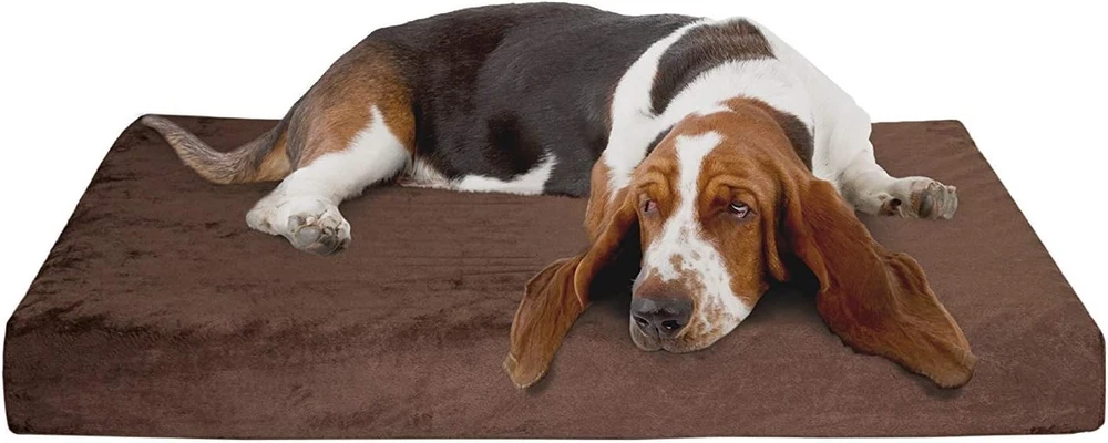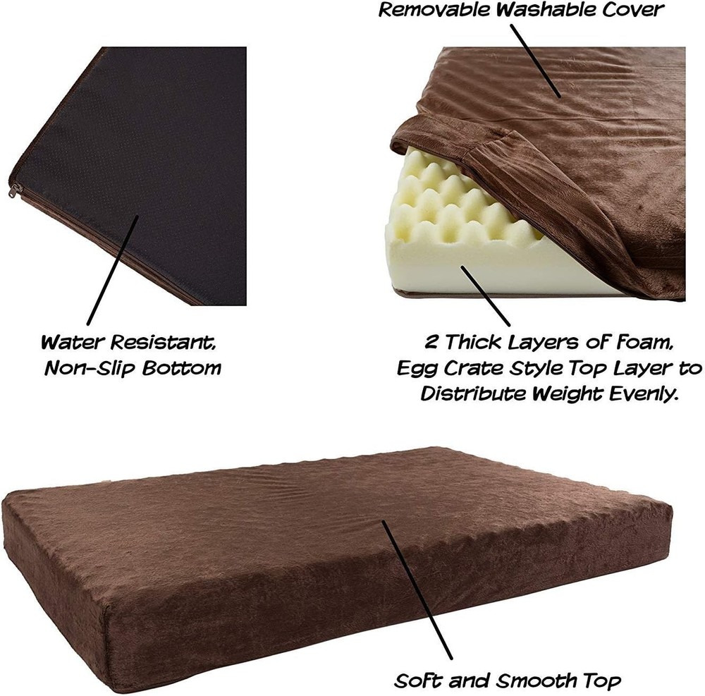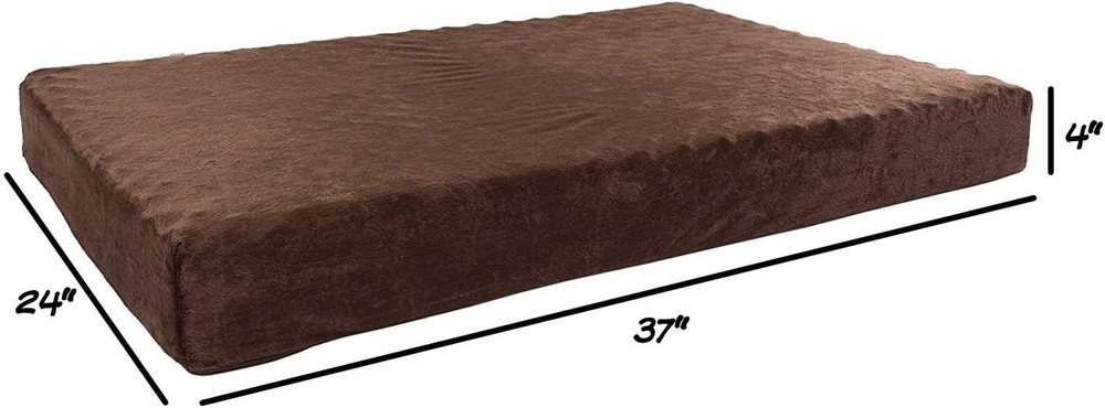 PETMAKER 2-Layer Orthopedic Memory Foam Dog Bed - Machine Washable Cover, 37 x 24, Up to 65lbs, Brown Product Details Brand: PETMAKER Breed Recommendation: All Breed Sizes Special Feature: Removable Washable Cover Material: Memory Foam, Polyester, Polyurethane Foam Product Dimensions: 37"L x 24"W x 4"Th MAXIMUM COMFORT AND SUPPORT – Our EXTRA THICK 4” foam insert consists of 2” of top quality Memory Foam and 2” of weight distributing Egg Crate Foam. This unique combination provides maximum comfort and support for dog of all ages and sizes. Dogs and cats in perfect health as well as those who suffer from arthritis, muscle stiffness, joint and hip dysplasia will love this bed. HIGH QUALITY MATERIALS FOR BETTER PET HEALTH– This PETMAKER pet bed is made of high quality materials. We don’t cut corners. We understand how import your pet’s comfort and safety are and we do all that we can to make beds that promote better heath through restful and pain free sleep. REMOVEABLE AND MACHINE WASHABLE COVER – The 100% polyester soft and durable plush removable cover is easy to clean and has a non-skid bottom. For best results, machine wash or clean with a light vacuum. PRODUCT DETAILS – Recommended for dogs or pets 40 - 65 pounds. Dimensions: 37 inches (Length) x 24 inches (Width) x 4 inches (Height), Color: Brown Materials: Outer cover: 100% Polyester, Foam Insert: 100% Polyurethane