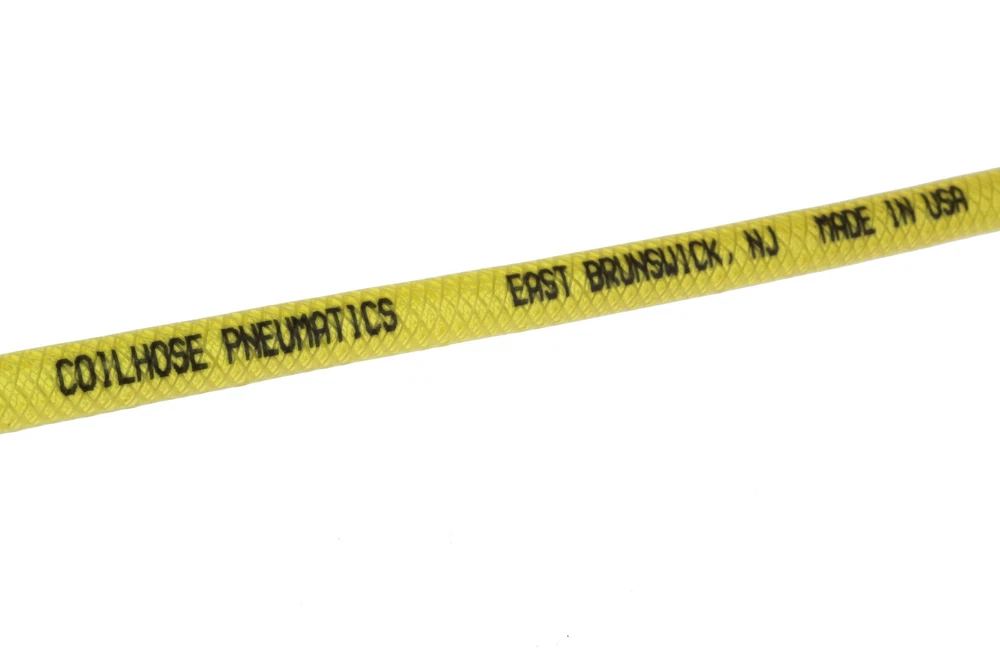 Flexeel Polyurethane Reinforced Hose is an excellent alternative to much bulkier rubber and plastic hoses. Extremely lightweight and tough, it's perfect for either outdoor contractor use or indoor industrial applications. Flexeel retains its flexibility even in cold environments. The integral construction of the hose eliminates the possibility of any separation between the inner tube, braiding and outer cover due to constant expansion and contraction during pulsing operations, such as with nail or staple guns. Assemblies include reusable brass MPT fittings with integral strain relief sleeves. Reinforced polyurethane air hose for outdoor contractor or indoor industrial use Polyurethane tube and cover for durability, flexibility in cold weather, and resistance to weathering, abrasion, oil, and kinks Integrated braided nylon reinforcement for strength Temperature range of -40 to +165 degrees F Two 1/4" factory-installed, brass MPT reusable strain relief fittings