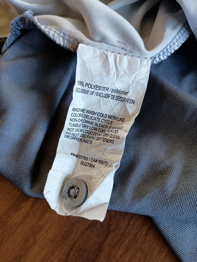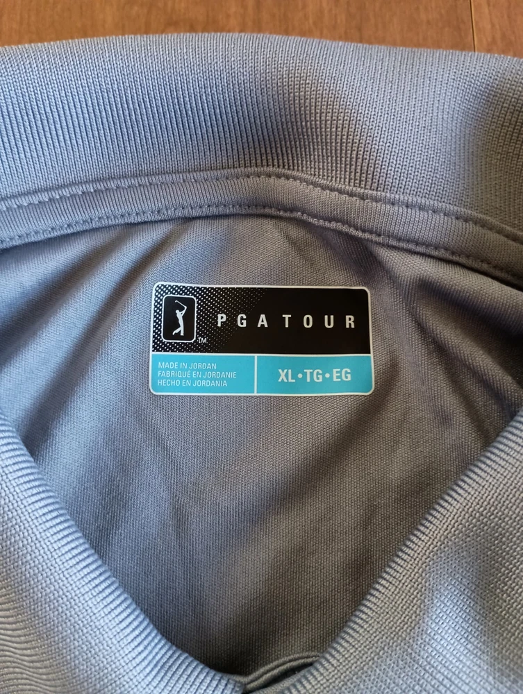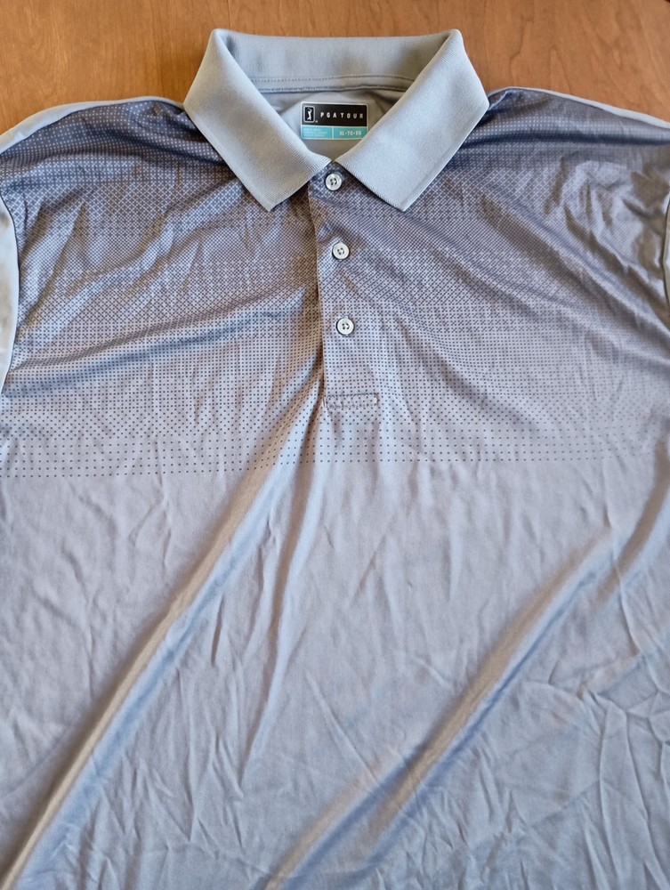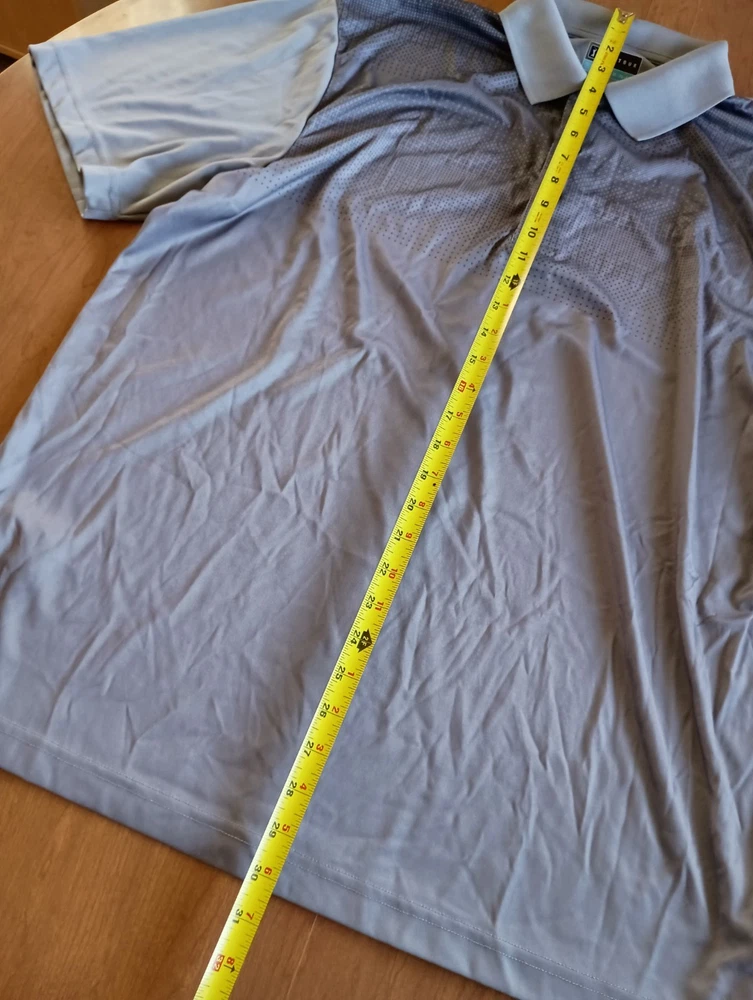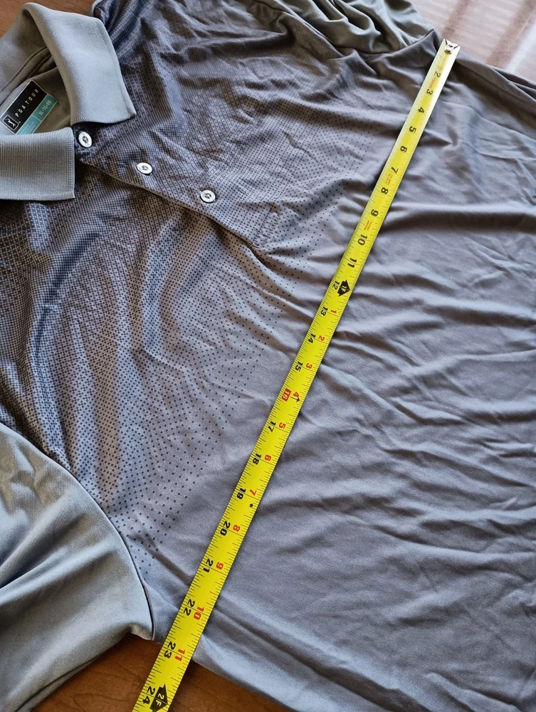 Condition is used/pre-owned - small discoloration on one sleeve and small threading issue on the other, see photos, penny for size Color is gray with black, black area slowly fades into the gray. This is a Collared 3 button polo Size says XL - see photos for approximate measurements This is currently being stored in a smoke/pet friendly home (will be put back in packaging until sold) Please see all photos before purchasing Check out my other listings as well