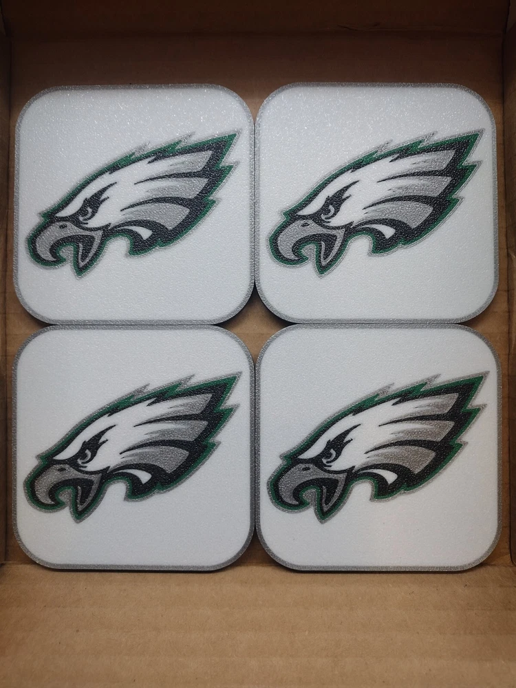 Personalize: No Country/Region of Manufacture: United States Type: Coaster Set Material: Plastic Sport: Football-NFL Theme: American Football Color: Multicolor Occasion: Sports Character Family: Sports Number of Items in Set: 4 Item Length: 3.5" Brand: PR!NT3D Shape: Square or Rounded Item Width: 3.5"