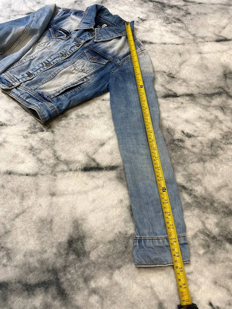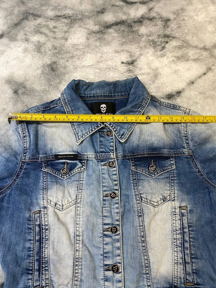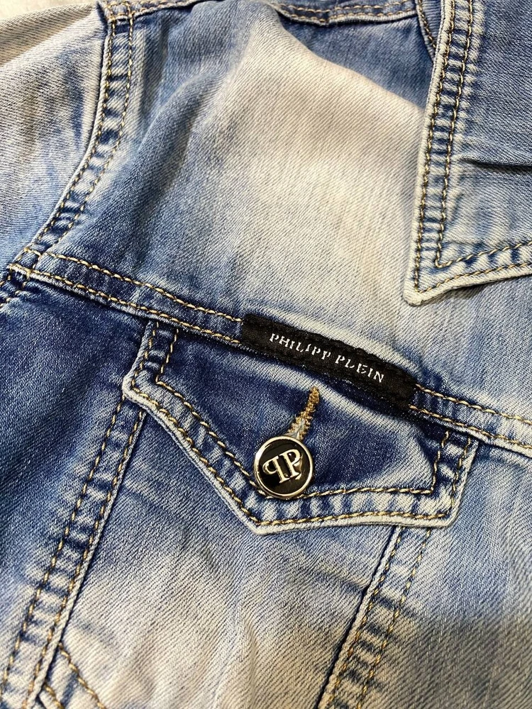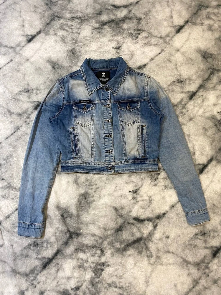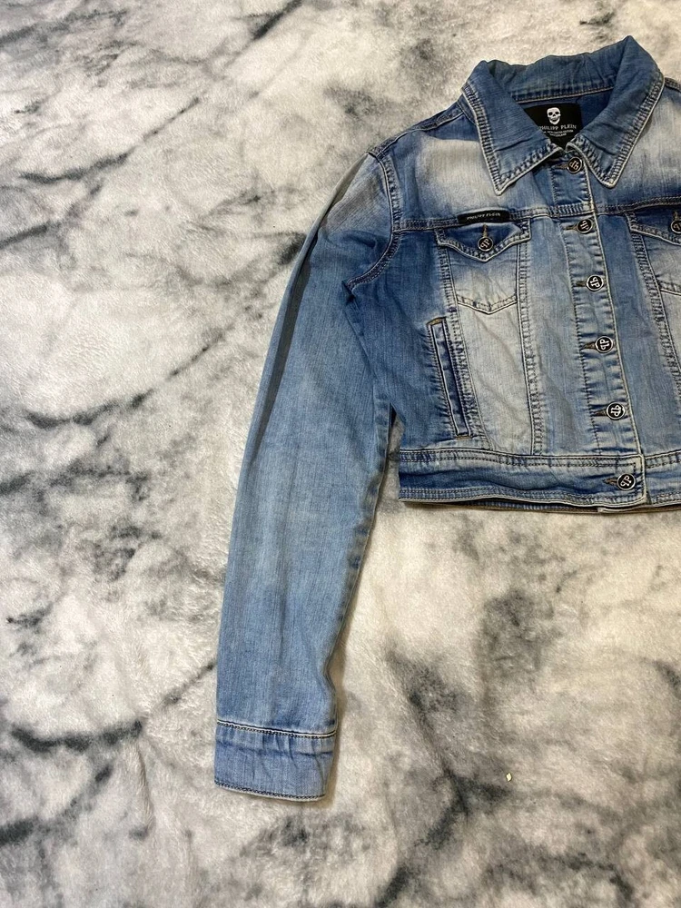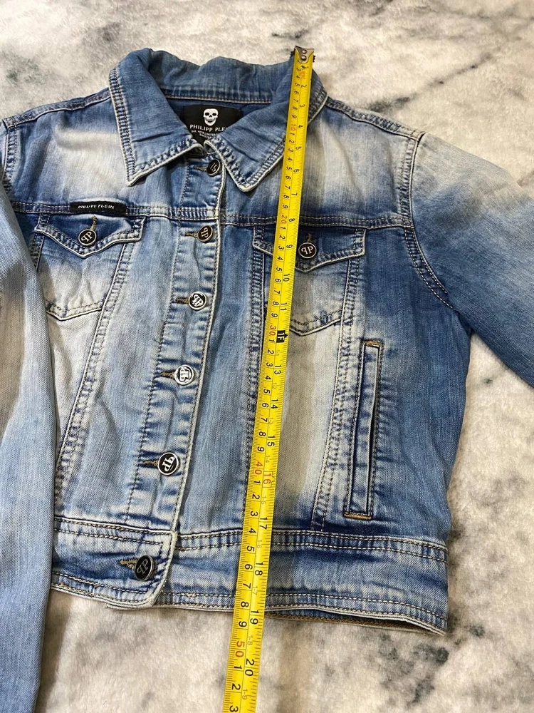Size: M Size Type: Regular Department: Women Outer Shell Material: Cotton Sleeve Length: Long Sleeve Color: Blue Closure: Zip Jacket/Coat Length: Short Brand: Philipp Plein Season: Spring, Summer Style: Denim Jacket Type: Jacket Occasion: Business, Casual, Travel Features: Limited Edition Pattern: Designer Lining Material: 100% Cotton Accents: Button, Logo Fabric Type: Denim