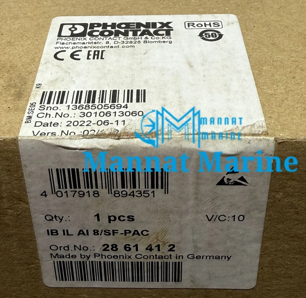 Jalsa Marine 100% Genuine Products + Fast & Free Shipping, Also you can check all Pictures. ------------------------------------------------------------------------------------------- PHOENIX CONTACT IBILAI8-SF-PAC ANALOG MODULE 2861412 PHENIX CONTACT INTERBUS H3GEXWAIICT4 GcX Tamb=-25°C ... +55°C IB IL A18/SF-PAC Order-No.: 2861412 Module-ID: 95 HW/FW 02/102 S.NO: 1368505694 CH NO: 3010613060 Made IN Germany Reference No: MM1495 Thank you! ------------------------------------------------------------------------------------------- Payment: PayPal / Payoneer preferred. Credit Card accepted by PayPal at checkout. Bank Wire Transfer accepted on large orders. Kindly message us for instructions. Packaging and Handling: 1 Business Day for Handling and Packaging. Professional Quality Packing. Shipping: FedEx Express, DHL Express, UPS, TNT Express International Shipping. Contact Us: Contact us through eBay Contact Member Service. We will get back to you at the soonest. Looking forward for your Positive Feedback!!! Happy Shopping!