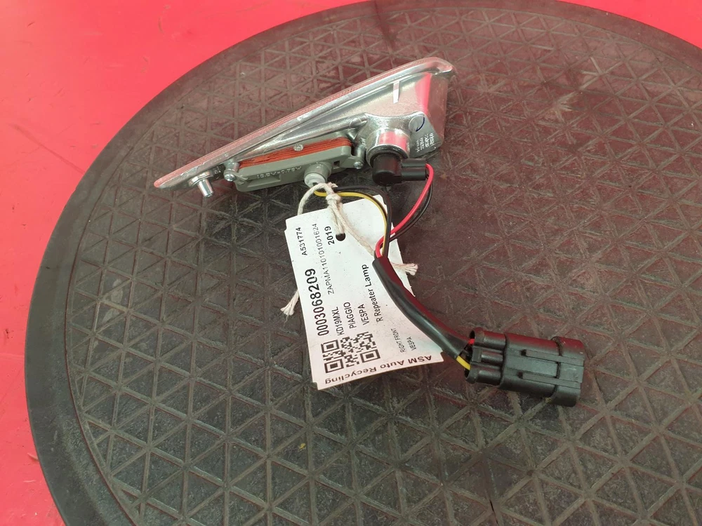 PIAGGIO VESPA REPEATER LAMP RIGHT HAND RH FRONT 2019 PIAGGIO VESPA REPEATER LAMP RIGHT HAND RH FRONT 2019 Part description This listing is for the pictured removed from a 2019 PIAGGIO VESPA. Please make sure the part is correct for your vehicle before buying The part was tested upon removal and comes with a 90 day guarantee If you are unsure about fitment to your vehicle please message us through eBay IMPORTANT INFORMATION Please ensure there is a current contact number provided on checkout as this help avoid failed deliveries. Please check goods on delivery and if Damaged in any way please sign for as DAMAGED or REFUSE the item and let us know immediately. All deliveries require a signature so please have items delivered to an address where there will be someone to receive and sign for goods. Please note that there are Re-delivery charges if no one at the address to receive goods and this is usually around 75% of original postage charge and would be at Buyers expense ( We would not cover these charges ). For items that are purchased for collection we would require the eBay collection code they provide to release the item , If this is not available The buyer would need to message on eBay whilst on site stating they are here and have collected / Received the item purchased for us to release. BHP 10.70 BHP Body Shape Moped Condition Above Average Engine 1 Cyl Engine Capacity 125 cc Engine Code Fuel Type Petrol Manufacturer PIAGGIO Manufacturer Colour RED Mileage 999999 Miles Model VESPA Model Group VESPA Part Colour Red Part Description VESPA Tag Number 0003068209 Transmission Speed 1 Transmission Type 1 Speed Automatic Trim VESPA PRIMAVERA 125 TOURING Vehicle Colour Red Year 2019 View listed parts from the same vehicle Click here --> Our Ref:0003068209 About Us All non-mechanical & non-electrical parts are covered with a 12 month guarantee, all other parts are covered by a 3 month guarantee unless otherwise stated, the guarantee covers the part only and not any labour charges involved. All our parts are marked or stamped and any parts with these markings removed or tampered with will not be covered with the guarantee. Please make sure all parts are inspected before signing to ensure the item has not been damaged in transit. If the courier refuses simply write "DAMAGED" and do NOT sign. Once an item has been signed for we cannot process any claim with the courier company. If on inspection the item is damaged do not sign for it and contact us as soon as possible. If the part has been ordered incorrectly then you must return it to us at your own cost and we will look to supply you with the correct part. If we cannot supply you with a replacement within 48 hours we will issue a refund with a 20% handling fee. You must contact us within 48 hours first before returning and this must be done within 14 days of receiving the part. Please note we ship to UK mainland only, overseas buyers to arrange shipment of items bought. We can package items ready for collection, packing costs will be added to do so. Terms & Conditions Established for over 20 years, ASM Auto Recycling is widely regarded as one of the UK's most modern and professional vehicle salvage agents and parts recyclers. Although the company has grown and invested significantly over the years to become one of the key players in the vehicle recycling industry, we pride ourselves on the fact that we have managed to retain the core 'family' values that our business was built upon, by trying to provide our customers with the desired levels of service, experience and enthusiasm that we would like to be given ourselves! At present we process over 15,000 end-of-life vehicles every year and specialise in online salvage auctions with over 1,000 damage-repairable and stolen-recovered cars, vans and bikes available for purchase every single week. We also boast an extensive used car parts centre. With over 2,000 vehicles stored at our premises for vehicle dismantling, we can supply used car parts for a large number of vehicles in the UK and across the world. Shipping costs for palletised items will vary for Scotland and the Highlands please contact us for a quote before purchasing This listing is for the pictured R Repeater Lamp removed from a 2019 PIAGGIO VESPA 125 Petrol with an engine code of and miles. Please make sure the part number is correct for your vehicle before buying. The R Repeater Lamp were tested upon removal and comes with a 90 day guarantee. If you are unsure about fitment to your vehicle please message us through ebay. © ASM Auto Recycling Ltd. Registered in England no. 01721363. Web design: MediaForge by Actopia.