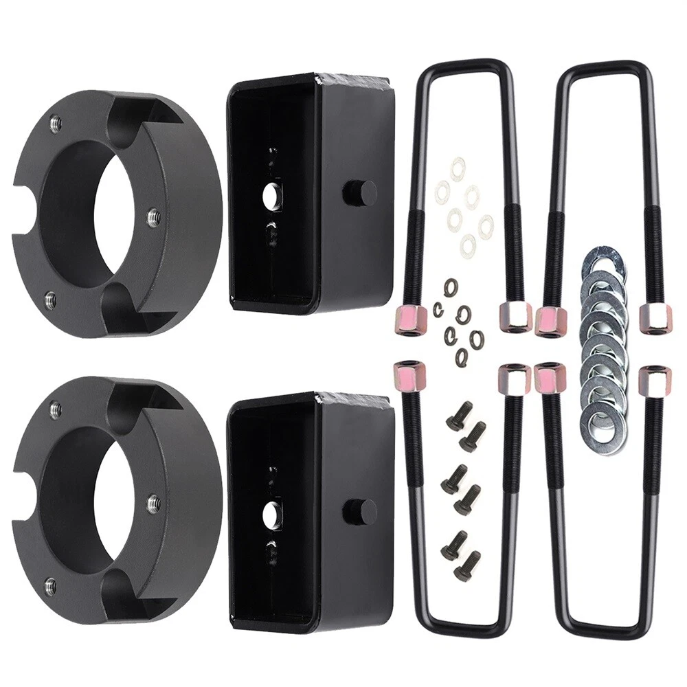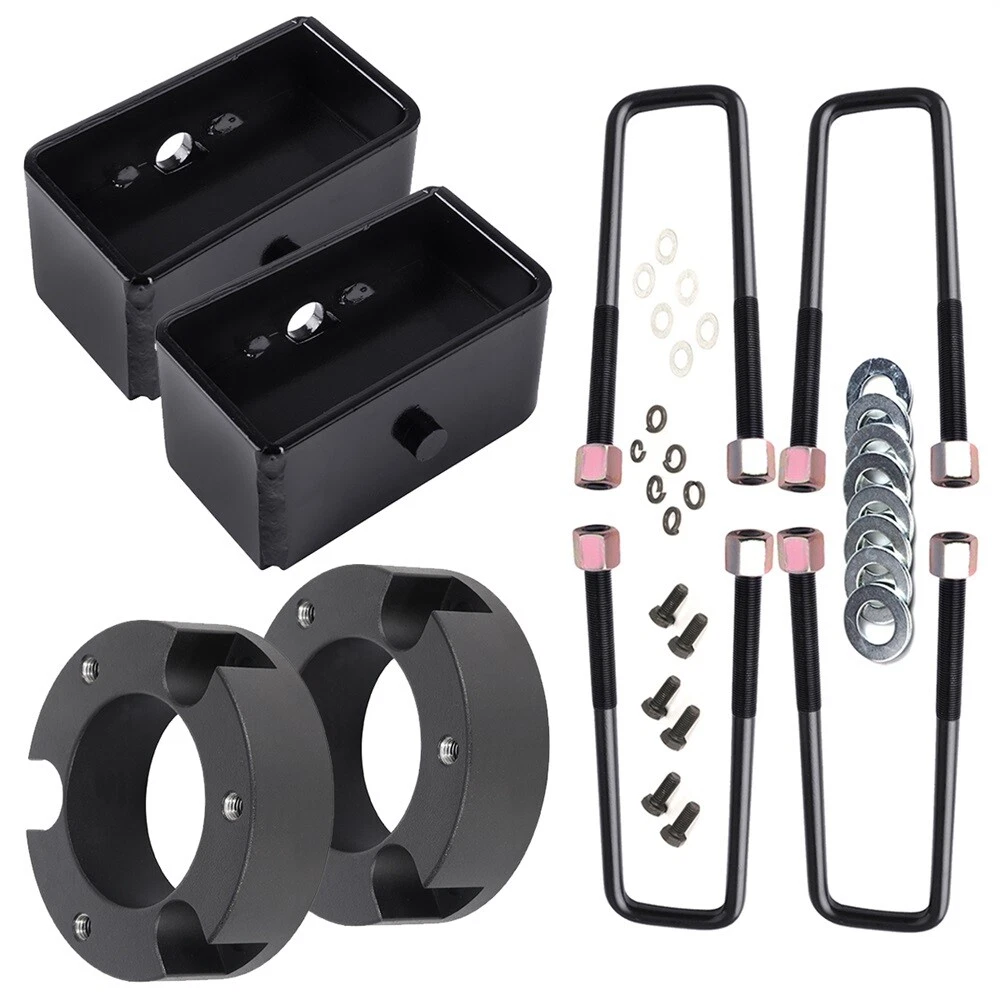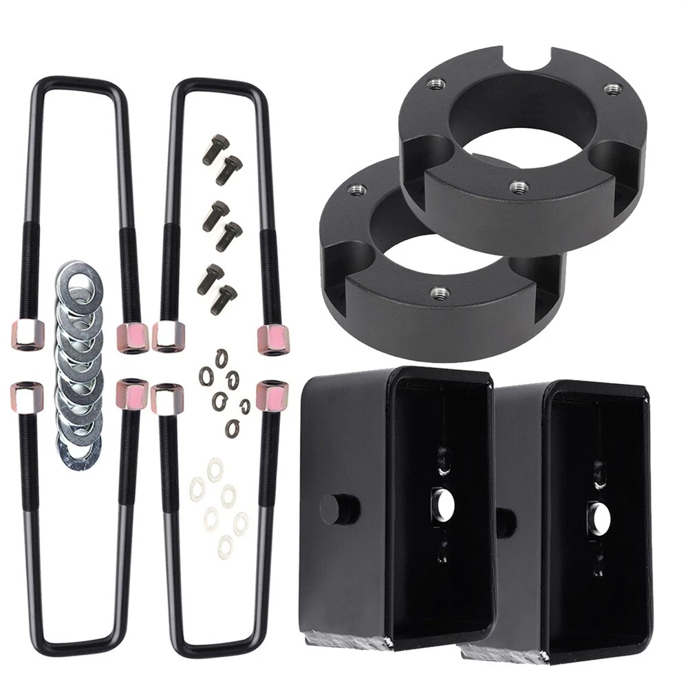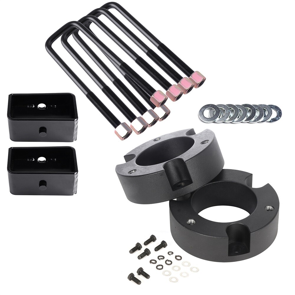 Material: Billet Aluminum Surface Finish: Texture black powder coat Thickness of Front: 32mm Brand: PICKOOR Kit Parts Included: leveling lift kits Manufacturer Warranty: 1 Year Manufacturer Part Number: 11445422 UPC: Does not apply Color: black Placement on Vehicle: Front, Rear, Left, Right Lift Height: 2.5" Front & 3" Rear gtin13: Does not apply Part Type: Suspension Lift Kit Adjustable: No Included Hardware: Mounting Hardware