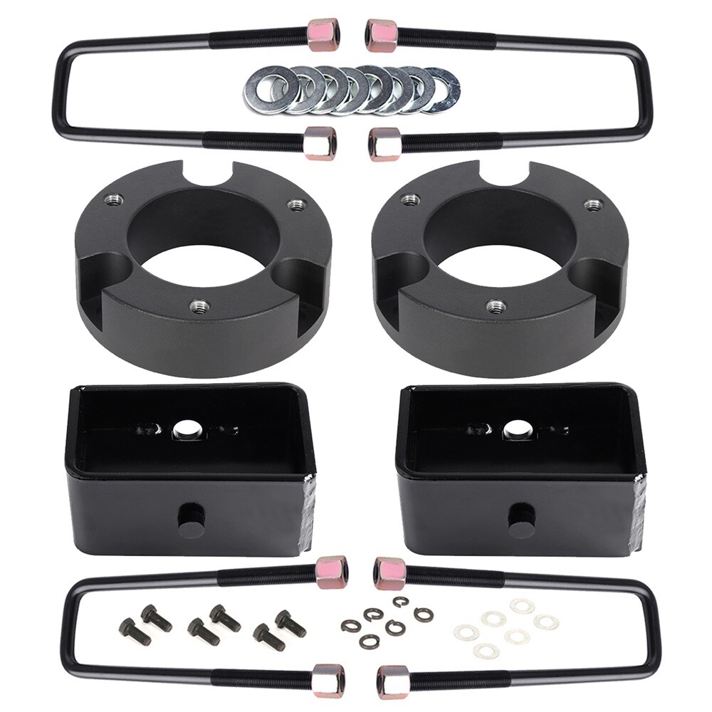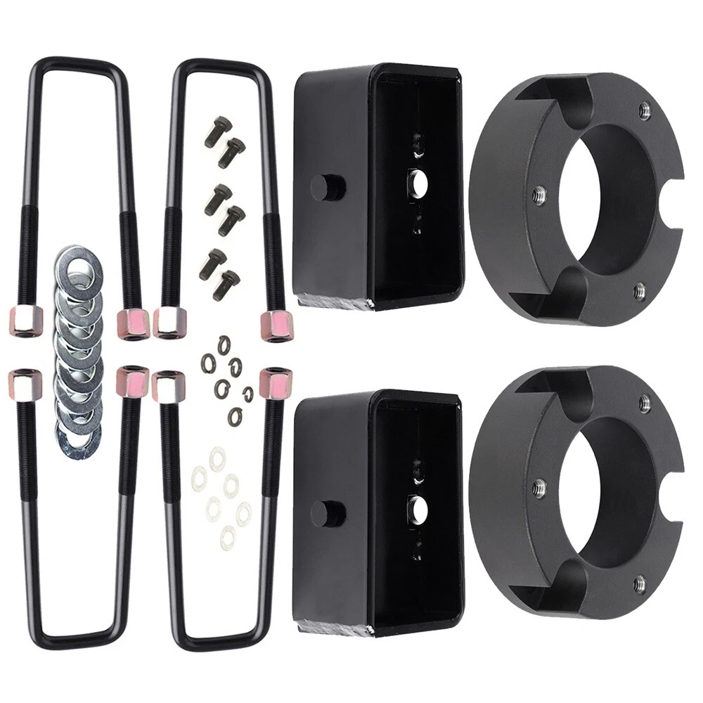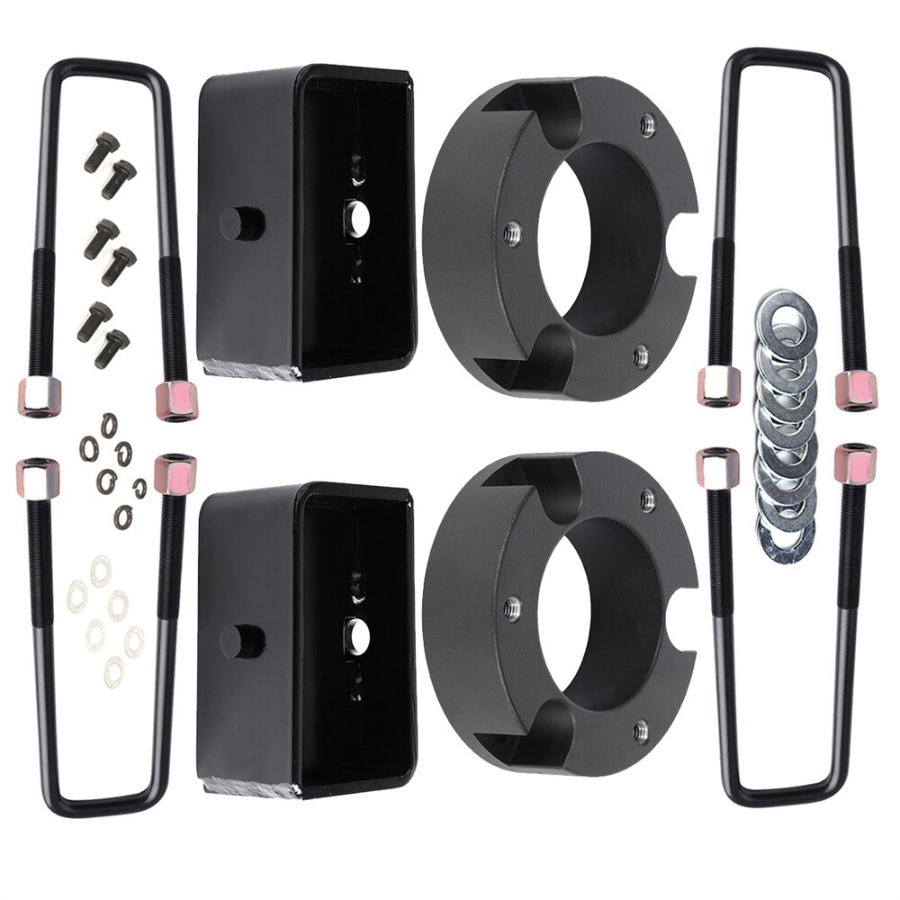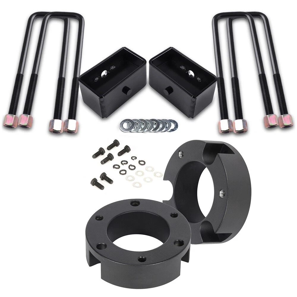 Material: Billet Aluminum Surface Finish: Texture black powder coat Thickness of Front: 32mm Brand: PICKOOR Kit Parts Included: leveling lift kits Manufacturer Warranty: 1 Year Manufacturer Part Number: 11445422 UPC: Does not apply Color: black Placement on Vehicle: Front, Rear, Left, Right Lift Height: 2.5" Front & 3" Rear gtin13: Does not apply Part Type: Suspension Lift Kit Adjustable: No Included Hardware: Mounting Hardware