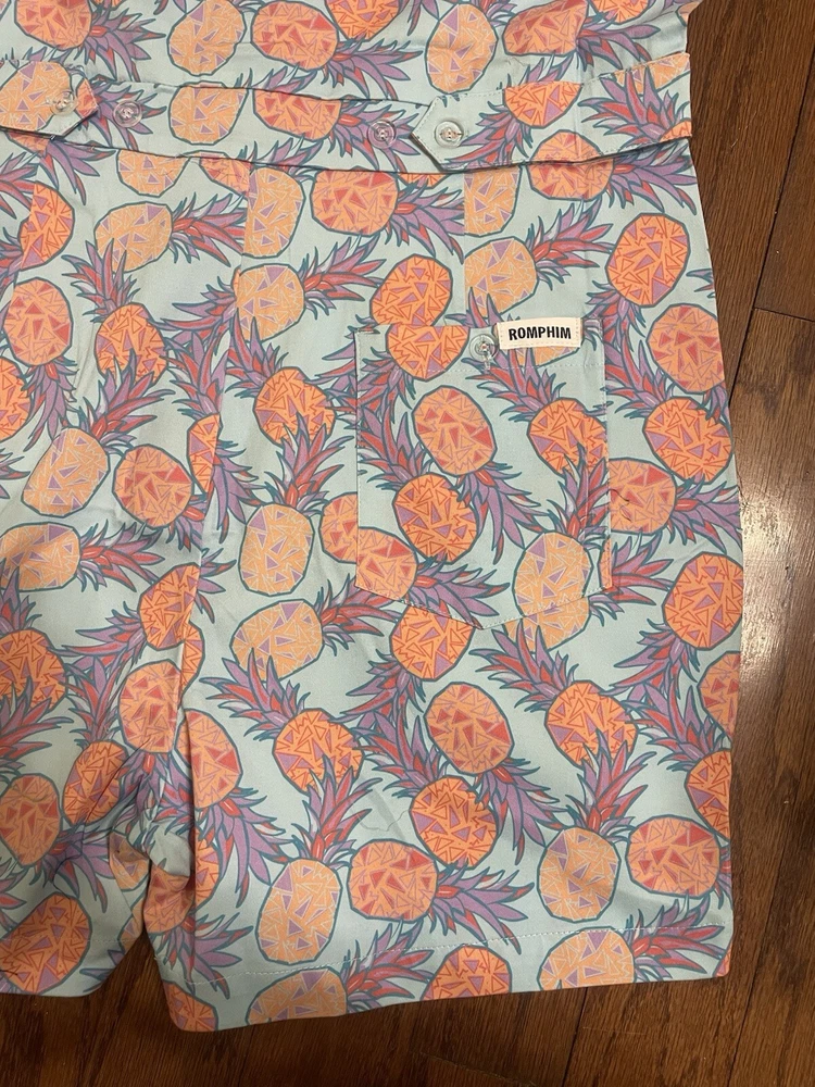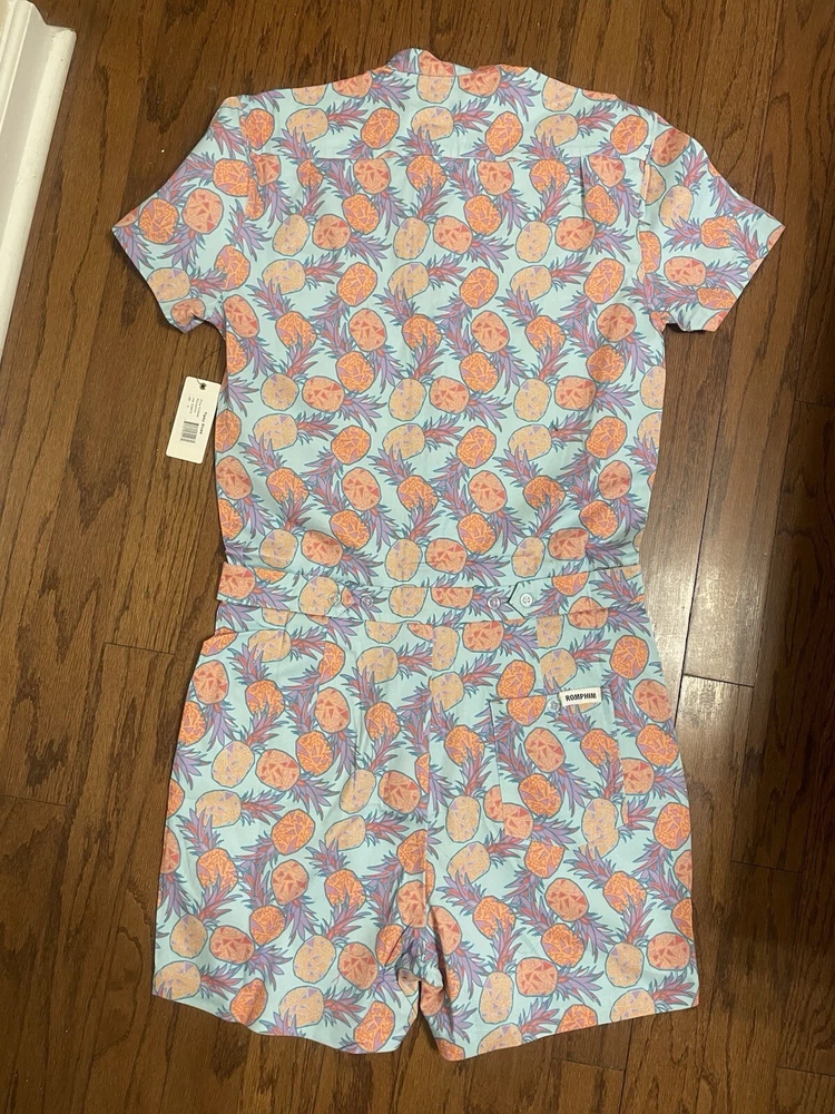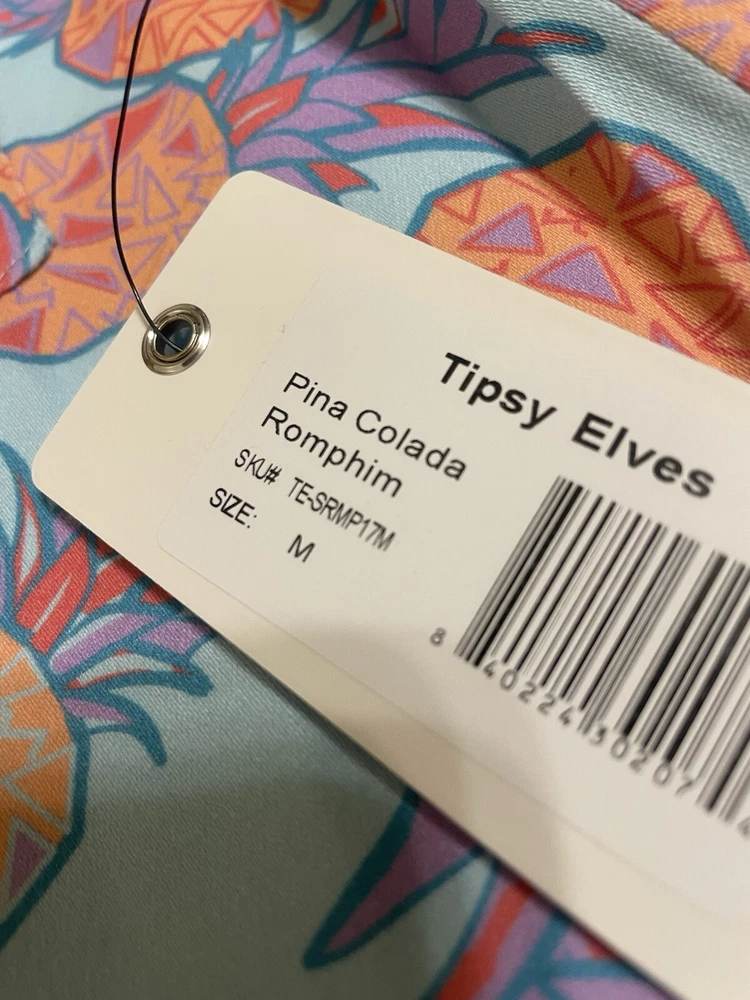 PINA COLADA ROMPHIM pineapple tipsy elves size M men’s NEW Vibrant colors, pockets at front and back, button closure. Green aqua color with orange and purple pineapples all over. Super cool and eye catching! Instagram: nina_benok