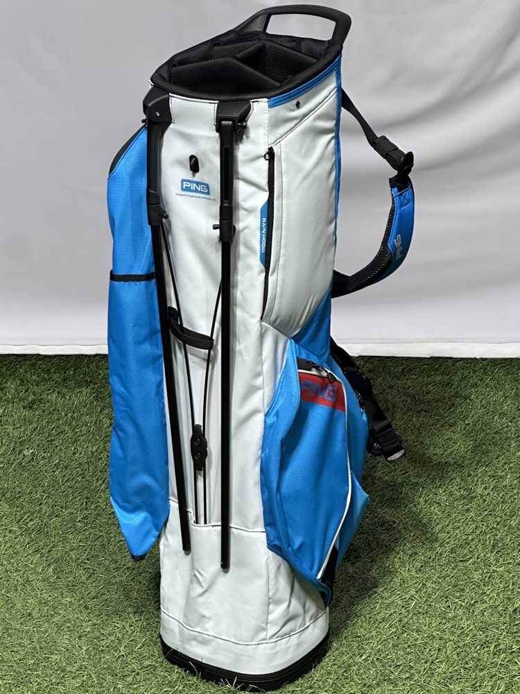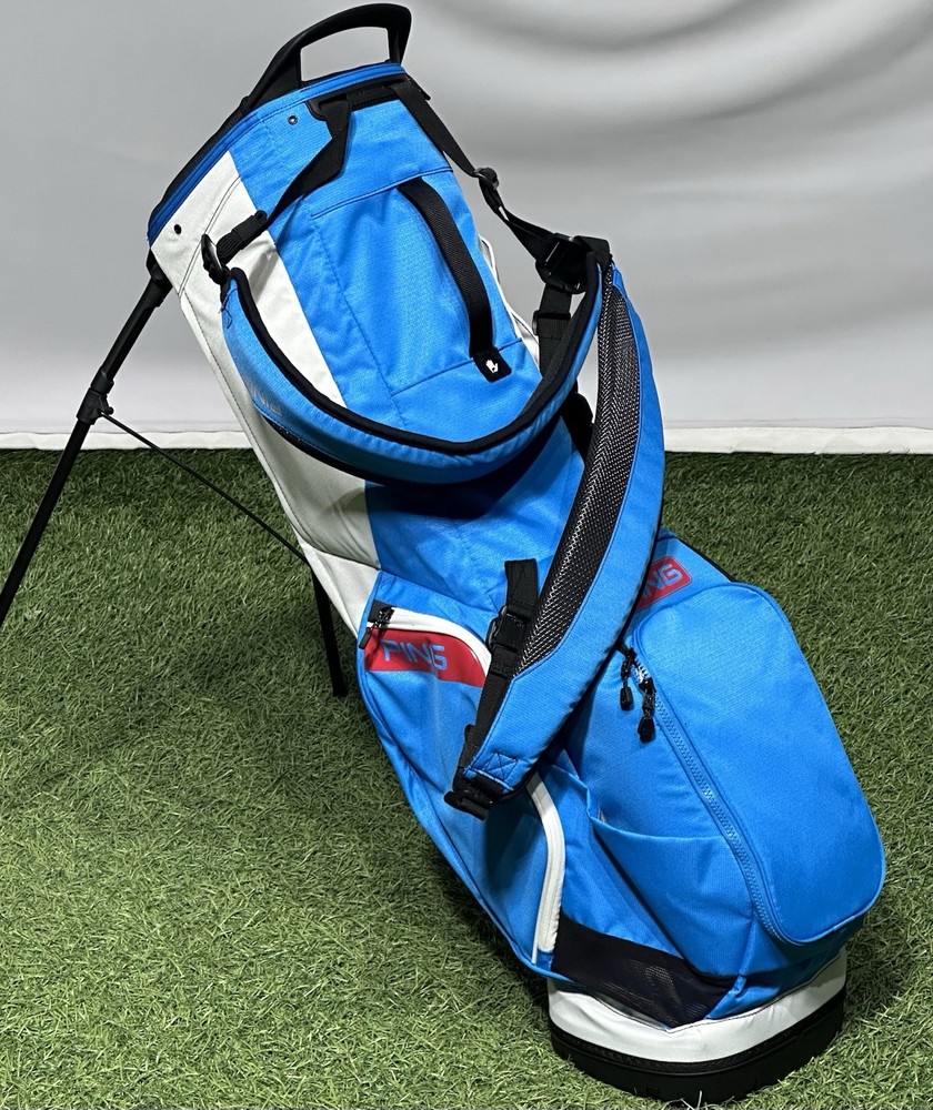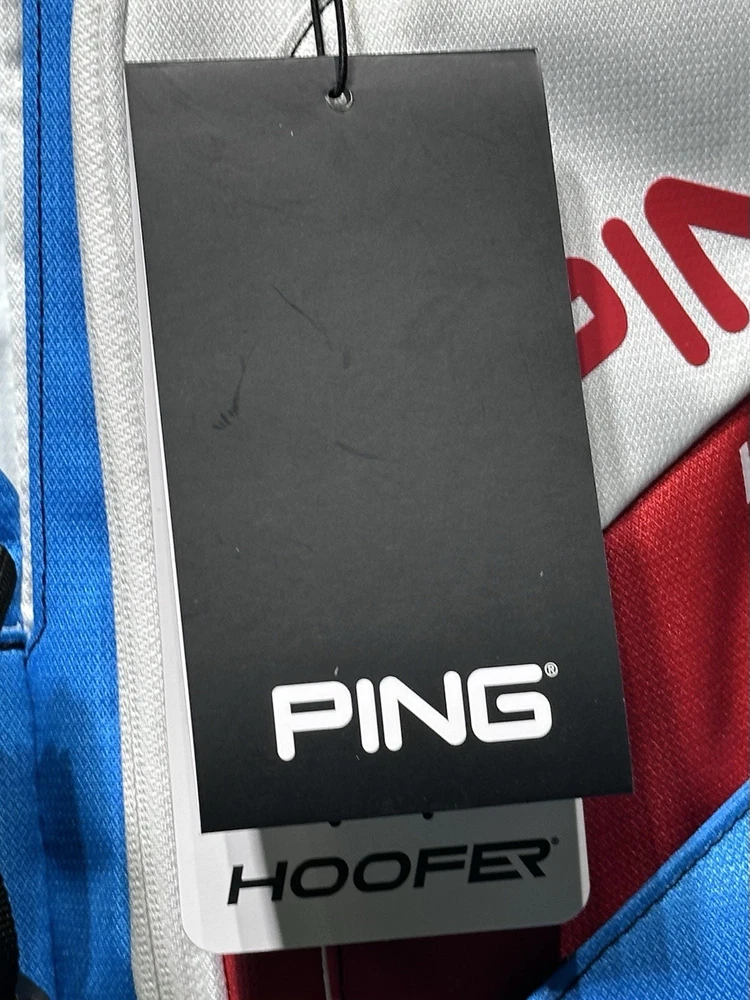 We are a reputable golf company that has been in business in St. Louis, Missouri since 1975. We have been doing this for 40 years because we do things right the first time. WE HAVE THE FASTEST SHIPPING ON EBAY! Don't believe us? Check out our Feedback. If you have questions, please feel free to ask. As always, thank you for looking. PING Hoofer 231 Stand Golf Bag COLOR: Blue / Red / White STYLE: Stand Bag DIVIDERS: 5-Way Divider CONDITION: New w/ Tags - See Pics (10/10) RAIN HOOD: Included The Ping Hoofer Golf Stand Bag has long been a favourite for golfers seeking a blend of practicality, comfort, and storage. This lightweight workhorse weighs only 5.5 lbs but offers an impressive 16 pockets, providing ample space to store everything you need for a successful round. Its 5-way top ensures easy organization, while a reconfigured bag bottom improves club removal by guiding your clubs to the correct segment and keeping them separated. The slimmer, stacked pocket design makes accessing your gear a breeze so that you can focus on your game. Features 5-Way Top : Offers easy club organisation and access. Weight : Lightweight at 5.5 lbs, ideal for carrying or cart use. Pockets : Equipped with 16 pockets for maximum storage versatility. Pocket Volume : Spacious 22L capacity for all your golfing essentials. Bag Bottom Design : Improves stability and facilitates smoother club removal. Ergonomic Top : Designed for comfortable and efficient handling. Leg Guards : Assist with leg separation for balanced carrying. Padded, Convertible Shoulder Straps : Provide adjustable, comfortable carrying options. Back Puck : Simplifies conversion to a single-strap setup. Zippered Rain-Hood Pocket : Ensures your rain hood is easily accessible and secure. Extra Storage Inside Apparel Pocket : Additional compartments for smaller items. Two Valuables Pockets : Includes one velour-lined pocket to protect delicate items. Apparel Pocket : Full-length zipper allows easier access to larger items. Zip-Off Ball-Pocket Panel : Customizable and easy to maintain. Magnetic Rangefinder Pocket : Ensures quick and secure access to your rangefinder. Cart-Strap Channel : Keeps the bag securely attached to carts without obstructing pockets. Material : Durable 300D polyester for lasting performance.
