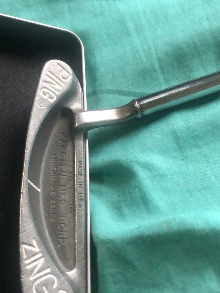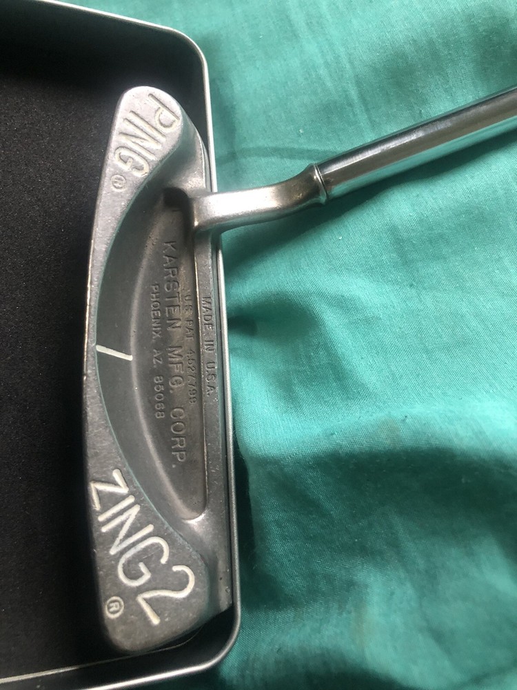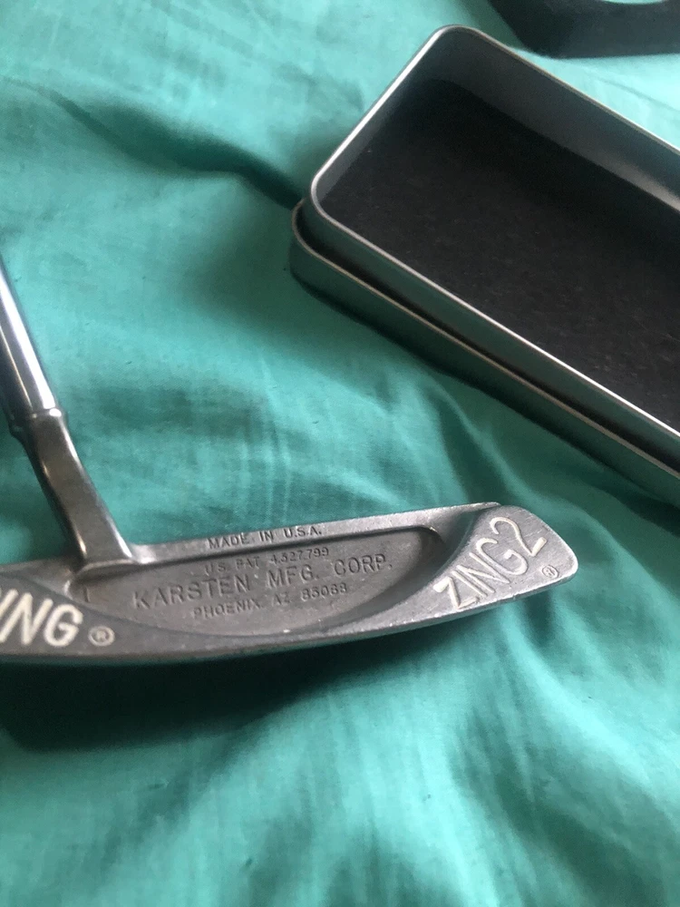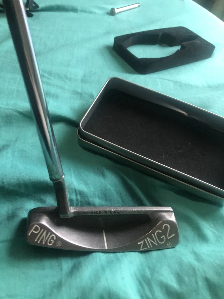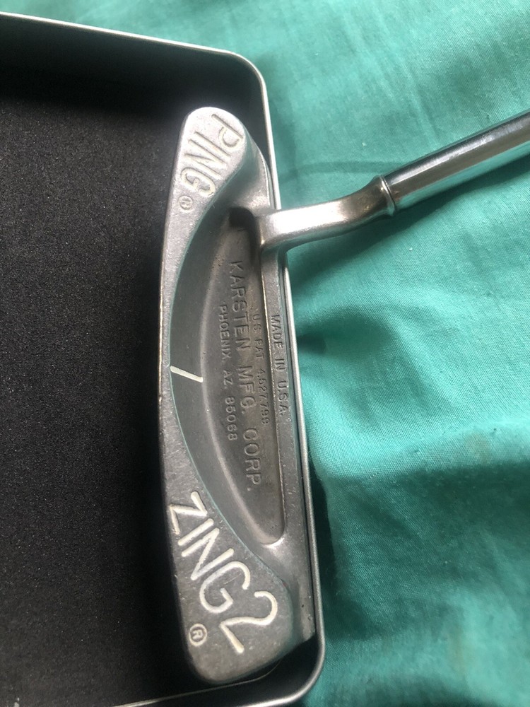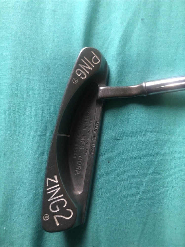 The PING Zing 2 Blade Putter is a 35" men's right-handed golf club with an original design. It features a stainless steel head, steel shaft, standard lie angle color, and a regular flex. The putter has a blade head shape, standard loft and bounce, and a 3.5° torque. It is a single club item from the Original model by Ping.