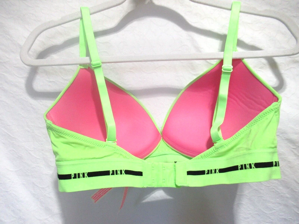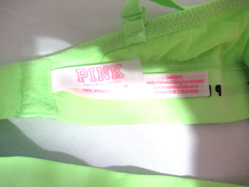 PINK By Victoria's Secret 34D Wear Everywhere Wireless Push Up Bra Chartreuse Green It is in Excellent Preowned Condition - Please see all photos as they are an important part of the description 86% Recycled Polyamide 14% Elastane All products are Original Authentic Brand Names , I do not sell knock-offs or imitations ** I am in no way associated with this brand, therefore any assumed or implied guarantees, warranty and or return policy, associated with this brand are not covered. If you do have any issues or concerns please feel free to contact me. ** Attention VeRO members: I am not affiliated or endorsed by the companies mentioned in this listing. All trademarks and copyrights are acknowledged, they are only used for informative description of the items offered for sale. All items are authentic as evidenced in photos, legally acquired and owned, and hence covered under First Sale Doctrine. Warning. Everything sold into the state of California contains agents known to the state of California to cause cancer and birth defects, reproductive harm, or other, as yet unnamed, harm to its citizenry. I TRY MY BEST TO LIST EVERY ITEM AS ACCURATELY AS POSSIBLE, HOWEVER, I AM ONLY HUMAN AND SOMETIMES MISTAKES ARE MADE. I AM A VERY FAIR AND HONEST SELLER AND MY FEEDBACK AND EBAY REPUTATION ARE VERY IMPORTANT TO ME. I ASK THAT IF YOU HAVE A PROBLEM WITH YOUR PURCHASE PLEASE COME TO ME PRIOR TO LEAVING ANY TYPE OF FEEDBACK FIRST SO WE CAN WORK IT OUT