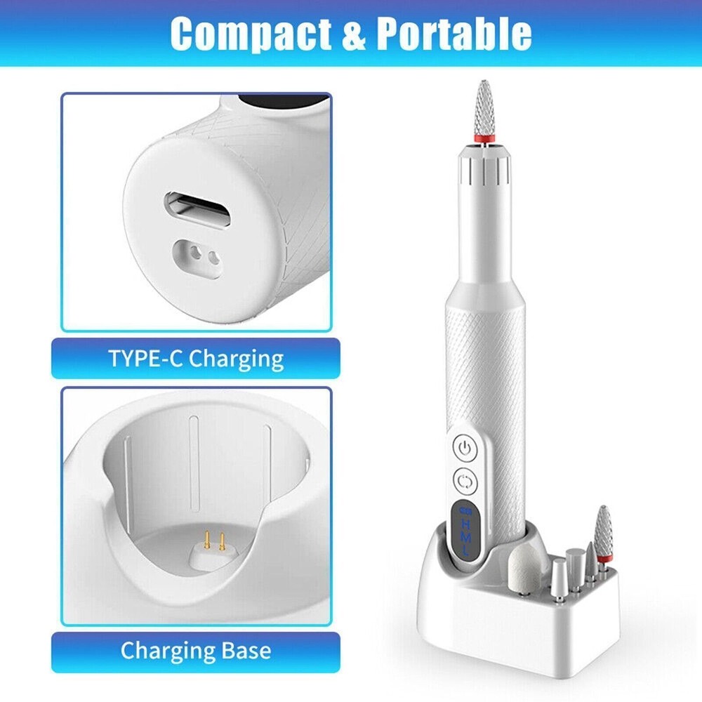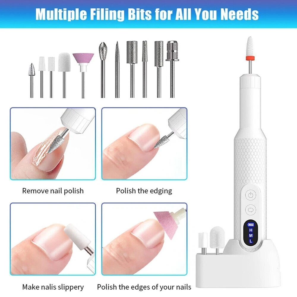Description : Note:If you have any questions, please contact us before open any case, we promise will solve the problem for you. Thanks! Features: Professional Nails at Home: No annoying cords that get tangled up & are too short. The cordless electric nail drill is designed to help you achieve and maintain salon-quality nails at home, by shaping, filing, and buffing for flawless nails wherever you go. Two Way to Charging & LED Display: There are two charging ports on our professional nail drill, can be placed on the base or directly connected to the USB cable for charging. Moreover, our base comes with 8 holes for drill bits, which is easy to take out or replace the drill bit, LED display allows you to check the power reserve & speed level at any time, giving you the flexibility and comfort you need. 3 Speed Settings & Dual Rotation: 3 adjustable speeds and F/R direction function to customize your mani & pedi wtih ease. It can be used effectively at different angles, or if you want to use it in either hand. The manicure set is compact and handy, the threaded body allows you make it easy to handle during use. Low Heat & Low Noise & Low Vibration: This nail drill machine is built of a powerful yet quiet motor and operates reliably, keep the machine in low heat, low noise, and low vibration while using it. (Make sure let the machine rest after 30 minutes continuous use) Package List: 1 x Nail Drill Machine 12 x advanced nail drill bits 6 x nail sanding bands 1 x Type C to USB charging cord 1 x charging base 1 x User Manual. Tip: There is a box of 6 drill bits under the plastic box, you need to remove the plastic shell from the box to see it. Note: 1. Please allow minor deviation due to manual measurement. 2. Due to the difference between different monitors, the picture may not reflect the actual color of the item. 3. Communication is the best way to solve the problem. If you have any problems after purchasing, please contact us in time, before opening return or cas Payment: We accept PayPal ONLY currently. Payment must be made within 3 business days. Shipping: 1. Item will be shipped within 1-7 business days from CN Stock or US Stock according to the item location. 2. Sometimes the ship date will be delayed due to a shortage. We will inform you via message. 3. Please leave available address and phone # in delivery information. Seller are not responsible for wrong address. 4. Please indicate your personal requirement such as colors, packages, value of declaration etc. at PayPal's message when make payment. 5. We will NOT responsible for any delay during delivery including but not limited to customs postage checking, strike, force measure etc. Customs Declaration: Import duties, taxes and charges are not included in the item price or shipping charges. These charges are the buyer’s responsibility. Please check with your country’s customs office to determine what these additional costs will be prior to biddingying. Feedback: As long as you are happy with your purchase, please kindly leave us for it is very important for our store performance. If there is any problem with your order, please contact us and give us a chance to resolve your problem Before leaving us a negative feedback. Return & Refund: Returns are accepted within 30 days. Please read the item description and check the pictures carefully before bidding. Return or refund is available only if item DOA or there's error in item description causing the item not fitting your need. In such cases, seller pays for all related shipping cost if any. Returns are also acceptable if buyer purchased this by mistake and item still in good condition for reselling. Buyer is responsible for all related shipping cost.
