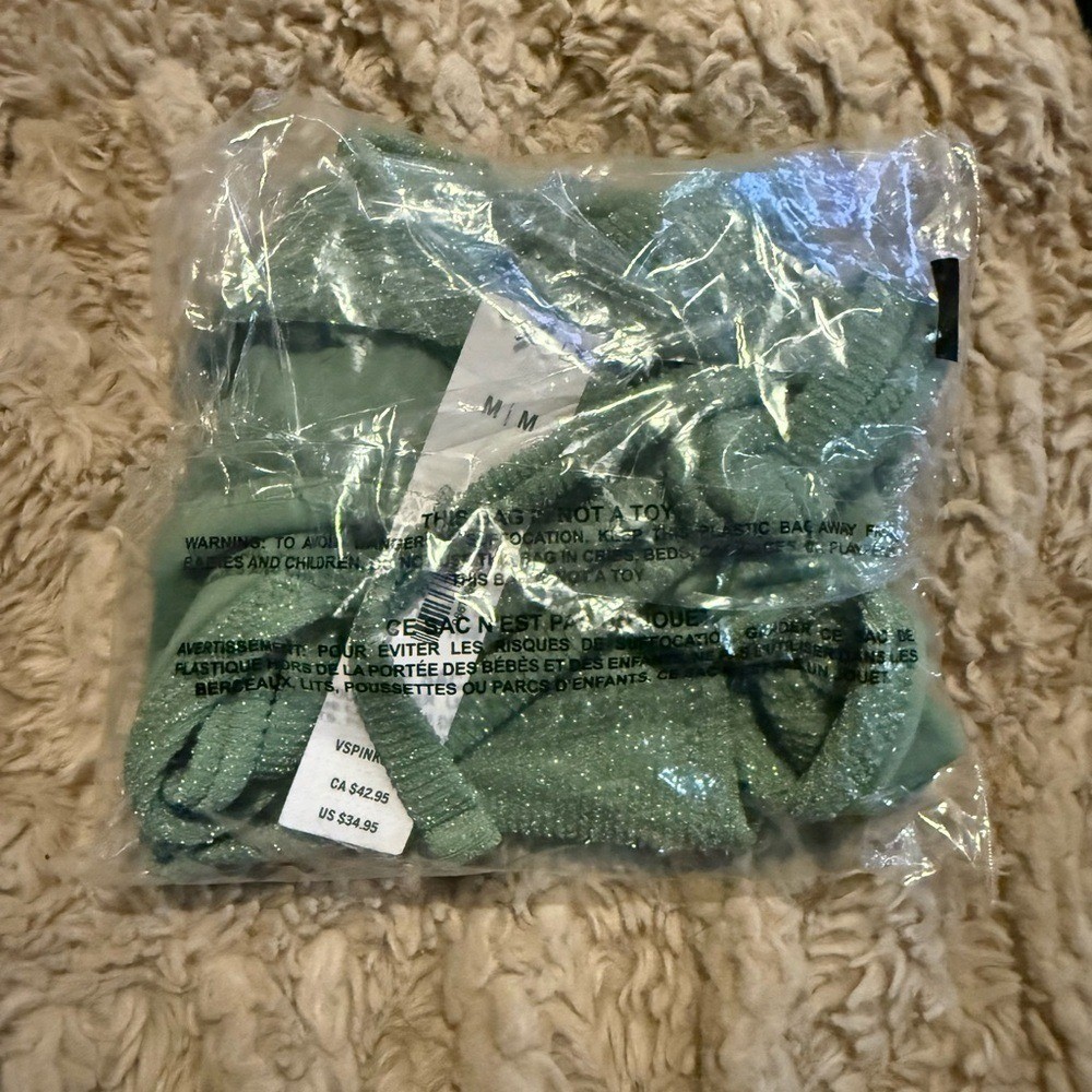 Victoria's Secret PINK green shimmer string bikini bottom only in a sparkling sage tone. Flattering tie-side style with adjustable fit and a subtle metallic shine that catches the light beautifully. Perfect for beach days, poolside lounging, vacations, spring break, and festival swim looks. Sold out colorway. Brand: Victoria's Secret PINK Item: Bikini Bottom Only Size: Medium Color: Green / Sage shimmer Style: String tie sides, adjustable Condition: New with tags Great for: shimmer bikini, VS Pink swim, tie side bikini, festival swimwear, summer beach style, resort wear, Y2K swim, glam swim aesthetic Model image generated with AI