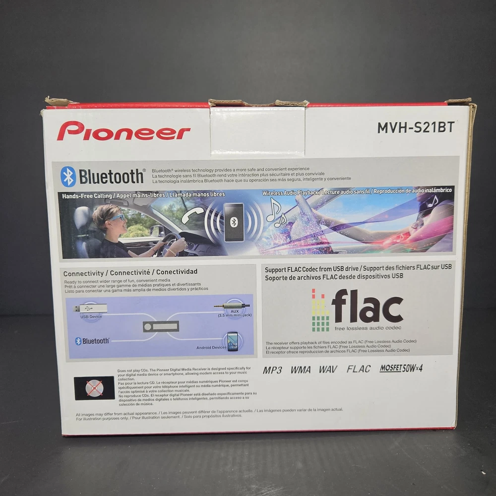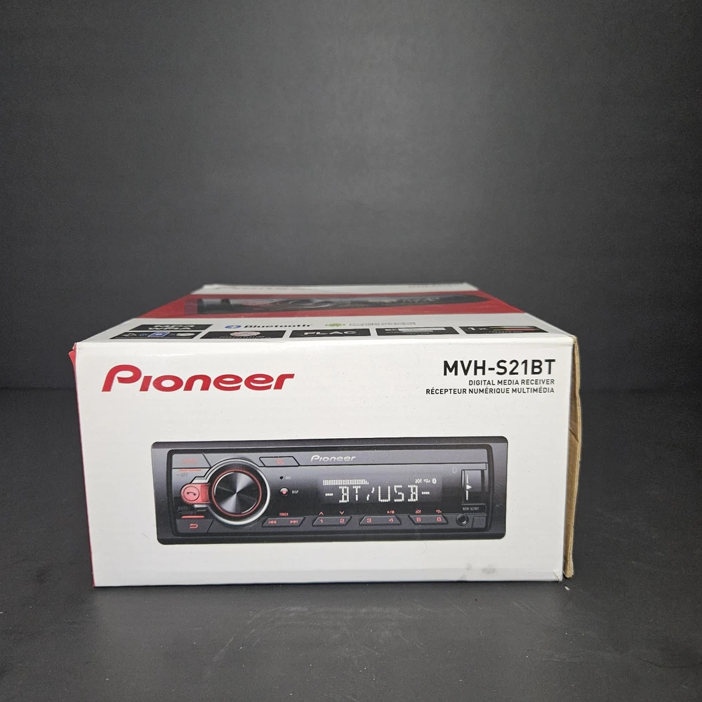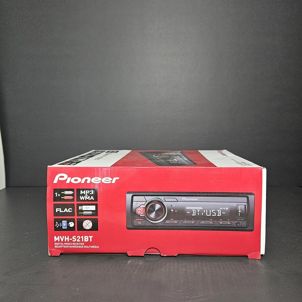 NEW! only opened to verify contents. FAST SHIPPING! The Pioneer MVH-S21BT is a 1 DIN digital media receiver designed for car audio systems. It features built-in Bluetooth connectivity for hands-free calling and wireless music streaming. With FM radio capability, users can enjoy their favorite stations while on the road. This Pioneer car stereo receiver is manufactured in the United States, ensuring quality and reliability. Ideal for upgrading your vehicle's audio system, the MVH-S21BT provides a convenient and seamless audio experience while driving.