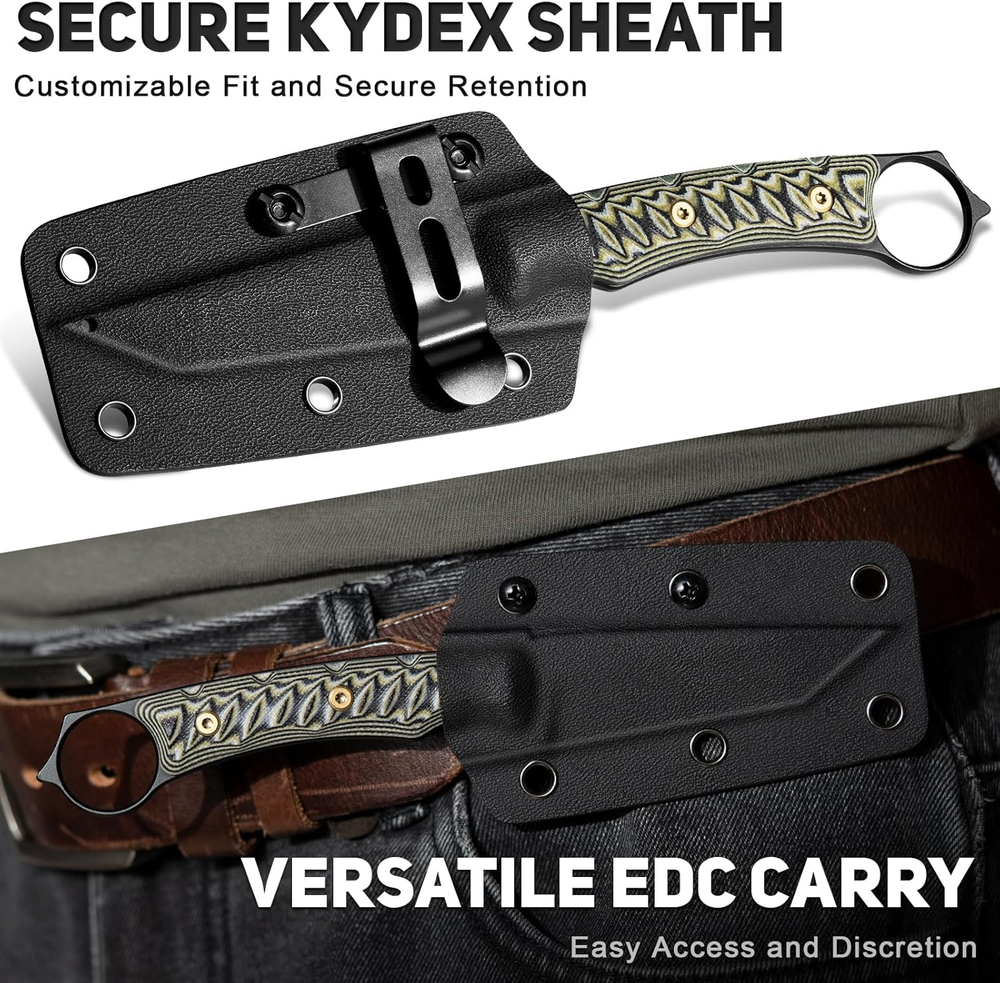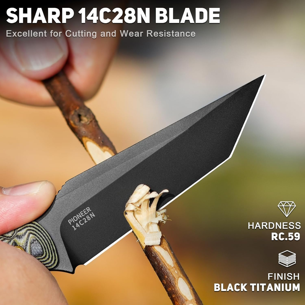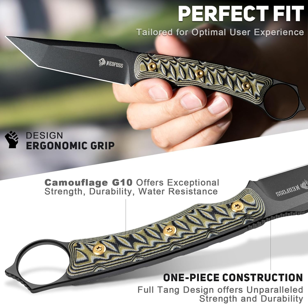 【TACTICAL-GRADE 14C28N TANTO BLADE】Razor-sharp 3.4" Tanto blade forged from 14C28N stainless steel-proven through -20°F winter field tests to slice frozen paracord/deer tendons effortlessly. Mil-spec black coating resists rust & scratches even after batoning hardwoods. 【AGGRESSIVE G10 HANDLE GRIP】3D-textured G10 handle delivers 68% stronger wet grip than rubber handles. Ergonomic curves prevent blisters during 8+ hour survival drills. Full tang knife construction is ideal for batoning firewood & ring for emergency glass breaking. 【MULTI - CARRY KYDEX SHEATH】Ambidextrous Kydex sheath with 2S quic-draw design. It can be carried horizontally and can be attached to all 1.75-2.25" belts, backpack, or waistband for convenient and safe transportation. The Kydex sheath keeps the overall weight of the edc fixed blade knife and sheath minimal, making it easy to carry the small fixed blade knife with you wherever you go. 【ULTRA-LIGHT EDC POWERHOUSE】Weighs only 2.85oz–lighter than your car keys–with 7.95" overall length that disappears in pockets. The small size and light weight do not compromise its performance - 3.4" blade is powerful enough to handle a variety of tasks, from everyday cutting to outdoor survival situations. 92% of buyers report daily carry for 6+ months in our user survey. 【ULTIMATE SURVIVAL GIFT SET】Built with a Full Tang 14C28N Steel Tanto Blade and a G10 Handle, this belt tactical fixed blade knife has been tested by outdoor enthusiasts and tactical users in extreme environments. Its robust construction makes it the perfect gift for men and women who love adventure. 【FAST AFTER-SALE SERVICE】: NedFoss knives are designed with your satisfaction in mind, addressing any repair or replacement needs due to material or workmanship defects. NedFoss service center provides fast response to take care of your requests. Product Description