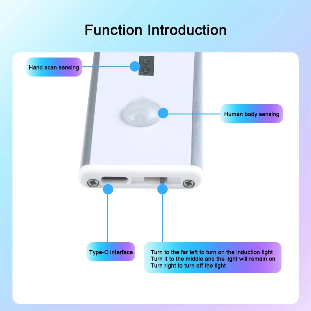 PIR Motion Sensor Light USB LED Night Light Type C Rechargeable Cabinet Lamp