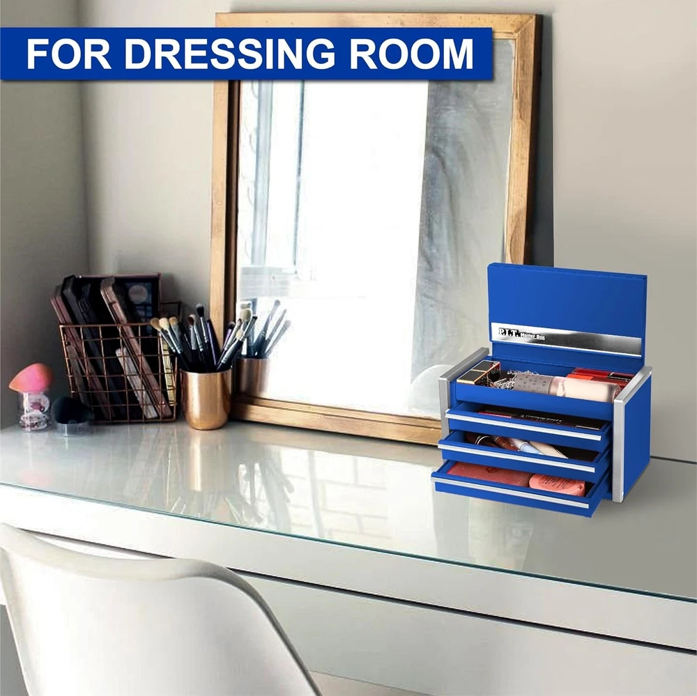 Multiple Storage Mini Tool Box - 8.6 X 4.6 X 4.8 Inches, lightweight and portable design, suitable for your day use. You can also match the 5-Drawer Micro Roll Cab to use together or separately. Please check the size before you place an order. It's a small box, if you mind, please don't buy it Magnetic Tab Locking - The magnetic locking is an easy-to-use locking mechanism that utilizes powerful magnets to lock automatically when you close the lid. The design of tab locking can close the drawer to ensure that your tools do not fall out while you are moving Wide Application - Strong function for home, office, warehouse, jobsites and so on. The micro tool box is suitable for storing small tools and accessories storing various parts like business cards, pens, pencils, paper clips, and much more Smooth Glide 3 Drawers - 3 drawers are equipped and provide a smooth glide operation Equip with Liner - Provides protective moisture barrier between tools and drawer, and protect your tools from rust