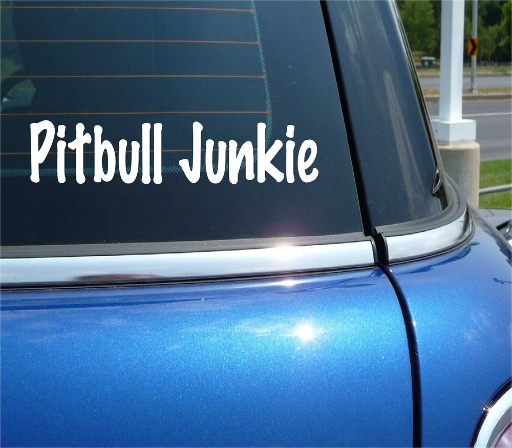 PITBULL JUNKIE DECAL STICKER FUNNY PIT BULL FAN DOG PET BREED SUPPORT CAR TRUCK