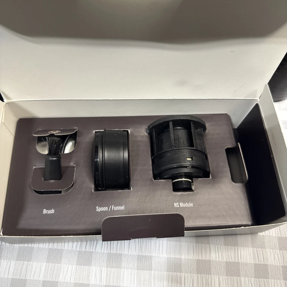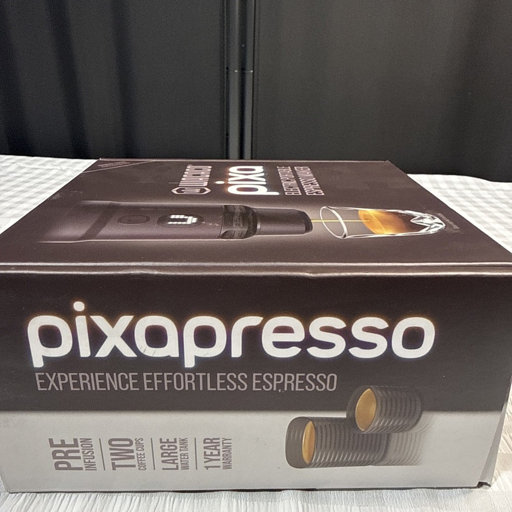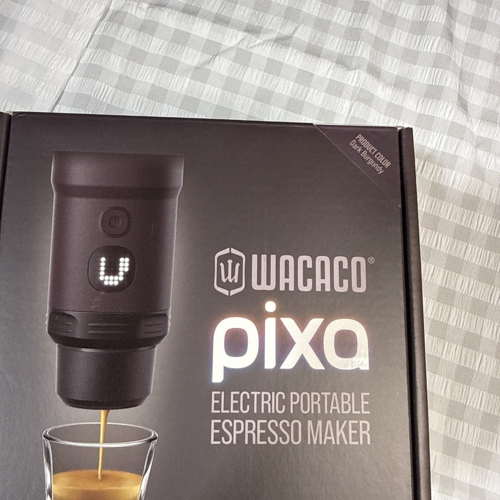 The PIXAPRESSO Coffee Machine is an electric and portable espresso machine that offers 4 different coffee types, including capsules and ground coffee. With a sleek dark burgundy design made of high-quality materials such as PP, PA6T, PBT, stainless steel, and silicone, this modern coffee maker from Wacaco is perfect for home or on-the-go use. It runs on 5V of power with a 100W motor, making it convenient to use anywhere with its reusable filter and included accessories like a funnel, carrying pouch, ground module, USB-C cable, capsule, and brush. Enjoy delicious espresso in style with the PIXAPRESSO Coffee Machine.