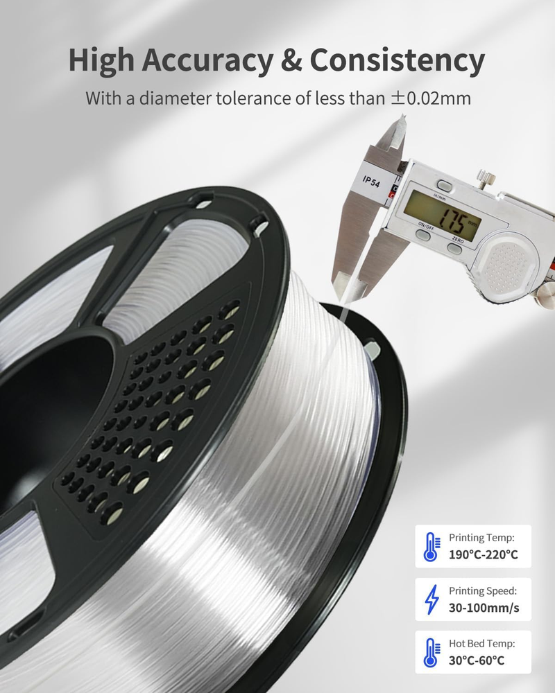 Store New Arrivals Add to Favorite View Feedback Contact PLA Filament 1.75Mm Clear, 3D Printer Filament 1Kg Spool (2.2Lbs), Neatly Wound, +/- 0.02Mm Precision, No Clog/Bubble, Excellent Layer Adhesion, Fits Most FDM Printers Description Unit Count 35.274 Ounce Material Polylactic Acid Number of Items 1 Color Clear Item Diameter 1.75 Millimeters Material Type Polylactic Acid Manufacturer Part Number -1081 Item Weight 2.7 pounds Package Dimensions 8.43 x 7.99 x 2.52 inches 【High Quality Transparent Filament】XZN clear pla filament is made of high quality material. Transparent pla is reliable, versatile and easy to use. No clogging, no bubbles, no tangles, and its excellent interlayer adhesion ensures high quality prints every time. 【High Accuracy】Minimum tolerance and low warping to ensure consistent feeding and stable prints, good layer bonding, less stringing, no bubbles, no cracking, no deformation, easy handling, resulting in an outstanding surface finish and are highly precise. 【Tangle Free & No Clogging】Total Length: 355m. Full 1KG 3D printer filament reel, perfect roundness and very tight diameter tolerance, good winding, does not overlap or tangle. Melt well, feed smoothly and constantly without clogging the nozzle or extruder. 【Vacuumed Sealed Packaging】XZN PLA filament use high-precision neat line arrangement, vacuum packaging and built-in desiccant, which can effectively prevent pla filament from moisture. 【Wide Compatibility】Compatible with most of FDM 3D Printers. Recommend pla filament extrusion / Nozzle temperature 190℃-220℃(374-428°F), hot bed 20℃-60℃(68-140°F). You are always the First for XZN. We are a team full of passions for 3D printing and strive to bring better printing experience for every customer Product description ABOUT US We offer the best prices around on high quality products. Our E-store includes media such as books, movies, music and games while offering electronics, toys, sporting apparel, clothing, tools, general home, garden items and more. SHIPPING We are always working hard to ensure your package arrives as soon as possible. Please understand that some factors like weather, high postal traffic, and the performance of shipping companies are outside of our control. We offer free shipping to the lower 48 states and ship within 2 business days of payment, usually sooner. We do not accept P.O. Boxes. Please provide a physical address. For shipping outside of the continental USA, we only use eBay's Global Shipping Program.The item is shipped to KY and then sent to the rest of the world. International customers are responsible for all duties and taxes. Continue to check out in order to calculate costs for shipping the item to your country. Messages regarding eBay's Global Shipping Program MUST be directed at eBay EXCLUSIVELY. RETURNS We offer a 30-Day Return Policy on items which you are not completely satisfied with. You have the option for a full-refund or an exchange of the item. No returns are available on items shipped outside of the USA. PAYMENT We accept PayPal. CONTACT US This page content is yet to come Please ad us to your favorite seller and visit again later Thank You CUSTOMER SATISFACTION We try our very best to make sure every customer is completely satisfied. If there's a problem, message us! We're happy to help. WE ACCEPT Copyright © 2021 AutoDS. | All Rights Reserved