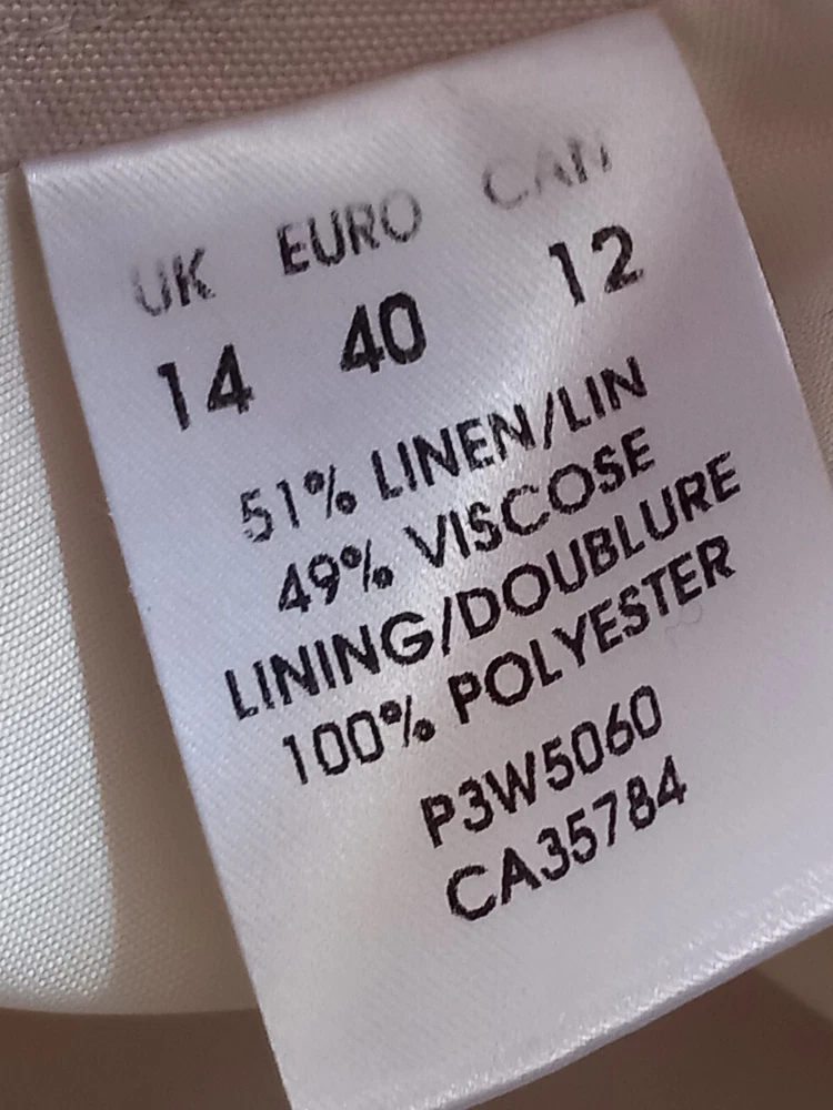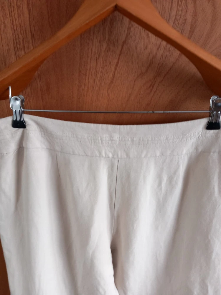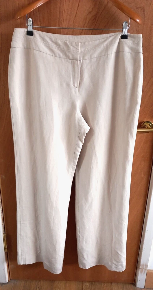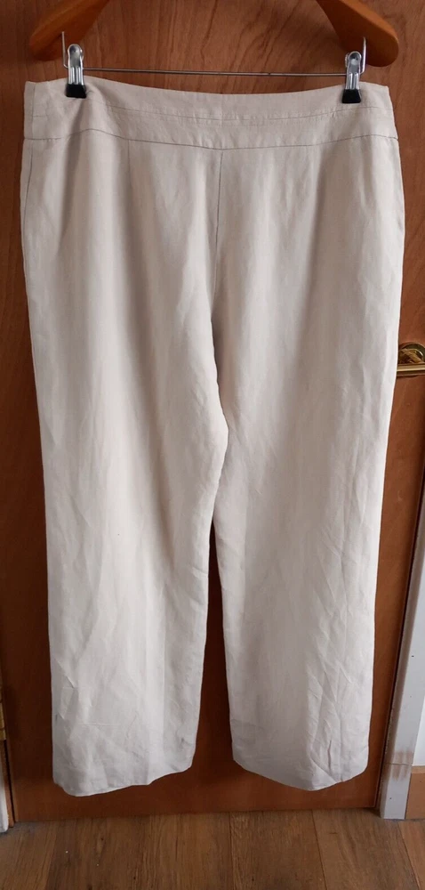 Gently used condition with no faults found . Measures 17 1/2" across waist area, 22 1/2" across hip area approx, 11" rise, 31" inside leg, 10 1/2" across hems. 51% linen 45% viscose, polyester lining.