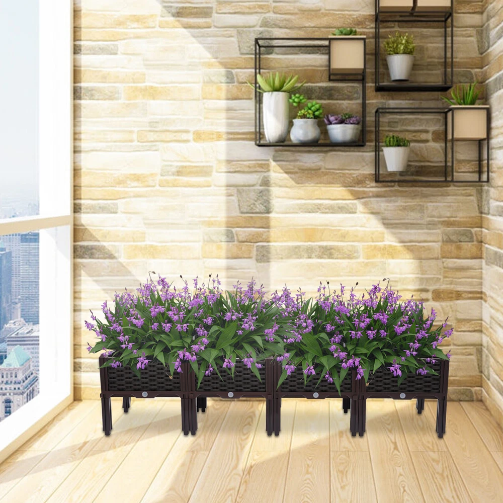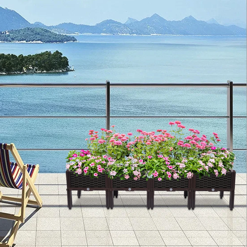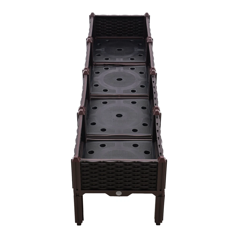 Outdoor Elevated Raised Garden Bed Planter Box with Legs for Vegetable/Flower Description~ Kindly reminder: Please put enough soil in the garden box first, otherwise it will not stand stable. Specifications: Material: Plastic Color: Brown Quantity: 4 Single Size (Length * Width * Height): 39*39*38cm (15.35*15.35*14.96inch) Four Combined Sizes (Length*Width*Height): 156*39*38cm (61.41*15.35*14.96inch) Features: 1. Easy to Assemble, with Drain Holes and Drain Pipes to Prevent Flooding. 2. the Product Is Made of Food Grade Pp, Which Can Be Used Outdoors or Indoors for a Long Time. 3. Provide Sufficient Growth Space to Grow Vegetables, Plants, Etc. Packing Including: 4 * Overhead Garden Box Payment Delivery details Terms of sales About us Contact us Payment We accept ebay payment 。 Fees such as import duties, taxes are not included in the item price or shipping costs. These charges are the buyer's responsibility. Delivery details Shipping: 2-9 working days to: USA Terms of sales We maintain high standards of excellence and strive for hundred percent customer satisfaction. Feedback is very important to us. We hope that you contact us immediately before you give neutral or negative feedback, so that we can address your concerns. It is impossible to address issues if we do not know about them! About us Your satis faction is our ultimate goal. We work hard to earn your trust and future business. Our certified technicians have tested each item before shipping. The unit comes with 1 year limited warranty on all manufacturing defects. a) If you receive a defective item, you may return it or ask for a discount. Please contact us within 14 days after you receive the package. b) What you returned must be intact and in its original packaging as re? u. Customer is responsible for shipping costs of the returned item. c) We will cover the cost of shipping back t with the shipping rate indicated in the registration page. We will send you a new unit or refund the full payment you paid. Thank you. Contact us Business Hour Business Hour: Monday To Friday: 8:30 AM to 5:00 PM (Beijing China time) Due to time zones, our reply to your questions may not be immediately. But within above working time, we will reply your email within 24 hours. If it's non-workdays, please kindly be patient and wait till Monday. Please contact us with ebay message. Please feel free to contact us if you have any questions. Monday To Friday: 8:30 AM to 5:00 PM (Beijing China time) Due to time zones, our reply to your questions may not be immediately. But within above working time, we will reply your email within 24 hours. If it's non-workdays, please kindly be patient and wait till Monday. Please contact us with ebay message. Please feel free to contact us if you have any questions.