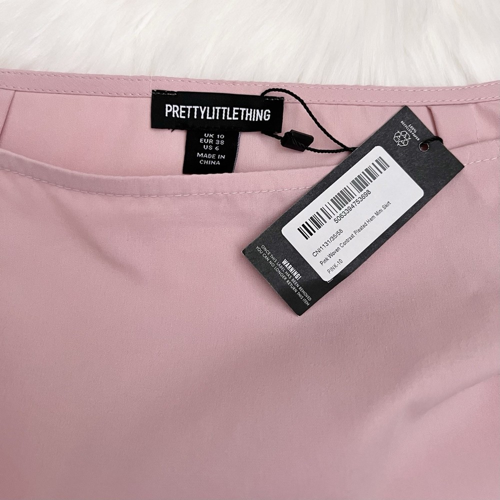 PrettyLittleThing Pink Woven Contrast Pleated Mini Skirt Size 6 100% Polyester Side Zipper #prettylittlething #miniskirt #preppy #coquette #pink Approximate Measurements (straight across): Waist 15” Length 13” 2.9 pink woven, pleated mini, side zipper, polyester skirt, pastel fashion, preppy style, girly aesthetic, layered hem, lightweight fabric, feminine look