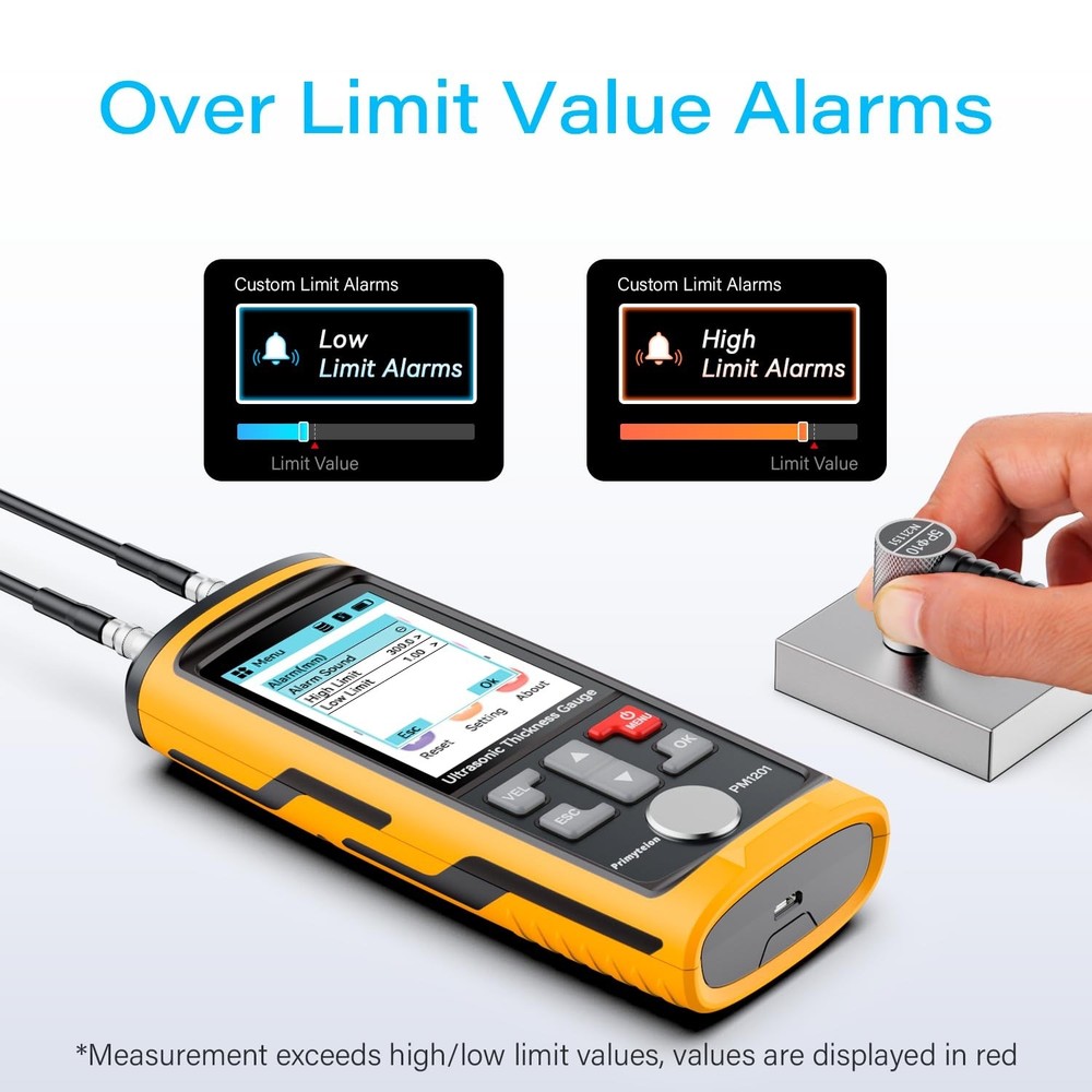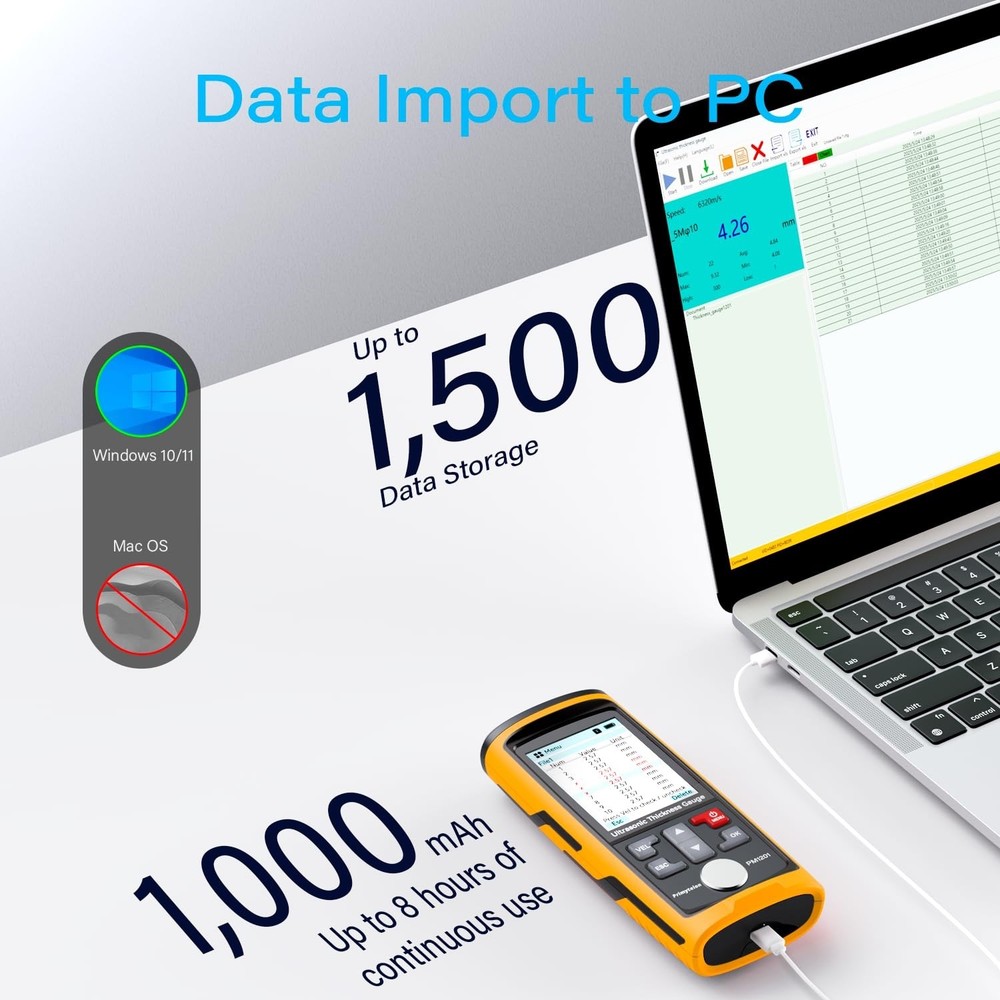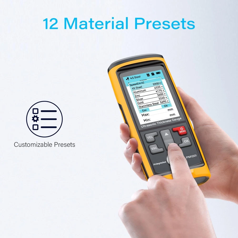 Entirely Non-Destructive: You can measure material thicknesses from 0.039 to 11.811 inches (steel) in 0.5 seconds, with a resolution of up to 0.0003 inches, and an accuracy of ± (0.5% H+0.001 inches). Two units switchable (mm/in). Adjustable speed of sound: Adjustable from 1000-9999 m/s, with 12 material presets and customizable settings to ensure accurate measurements. Multifunctional: This ultrasonic thickness gauge features a color LCD backlight, enabling it to be used in all light conditions. , Min/Max/average mode, customized sound velocity presets, data storage, high & low limit alarms, low battery indicator, auto power off, automatic probe recognition features and support the connection of computer software for data recording and statistical analysis. Long Battery Life & Portability: This handheld ultrasonic thickness gauge weighs only 5.57 oz, making it easy to carry and operate. Equipped with a built-in 1000mAh rechargeable battery, it delivers up to 8 hours of continuous use. The ergonomic rubber housing ensures a comfortable grip while offering enhanced protection against impacts and abrasions. Buyer pays actual USPS shipping cost. IF YOU DO NOT PAY WITHIN 24 HOURS OF THE AUCTION CLOSING, YOUR ORDER WILL BE CANCELED - NO EXCEPTIONS. Most items ship the next business day after the auction closes. PLEASE NOTE, I DO NOT ACCEPT RETURNS. US Seller - not a drop shipper. I pack and ship all items. All items are new in original packaging. If you wish to combine your order with a future auction, please submit payment for your item and contact me. After you have paid for the item, I will hold it as long as you wish and combine with future orders. I will reduce the shipping cost when you are ready to have all of your orders shipped.