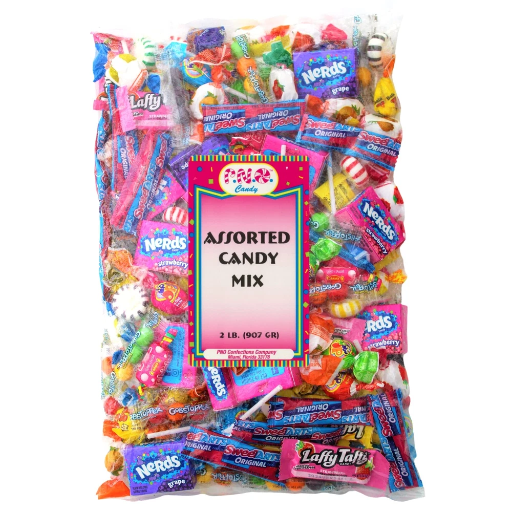 CANDY IN BULK: This big bag of candy is 2 Lbs and provides a great value. Perfect for Halloween candies and pinata candy mix. CANDY VARIETY: This candy in bulk has incredible variety candy such as Nerds, Laffy Taffy, Sweet Tarts, Gobstopper, Prop Pops Lollipops, Now Or Later, Chicle Bol gum, mints, classic lollipops, and more! GREAT FOR ALL AGES: This candy mix variety pack will be enjoyed by kids of all ages (and adults too). Enjoy this party candy mix with all friends and family! INDIVIDUALLY WRAPPED: This variety candy pack is individually wrapped. Items are repackaged in a facility that may contain milk, soy, peanuts, tree nuts, eggs, wheat and all other allergens PARTIES & HOLIDAYS: This party candy can be used for piñata candy, bulk Halloween candy, and other festivities!