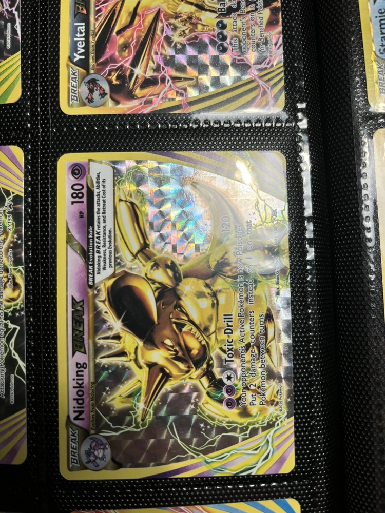 This Pokémon TCG card lot features 17 mint condition cards, including the sought-after Black Star Promo cards. The set is from the Promo Cards category and includes the rare Stars card. The cards are perfect for collectors and players alike, and are suitable for ages 8 and up. The speciality of this lot is BREAK, making it a great addition to any collection. Whether you are a fan of the game or just love collecting, this lot is sure to impress. Don't miss out on the chance to add these amazing cards to your collection. 2 NIDOKING 2 YANMEGA