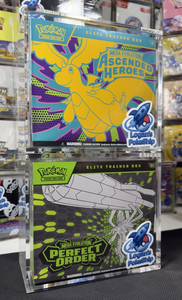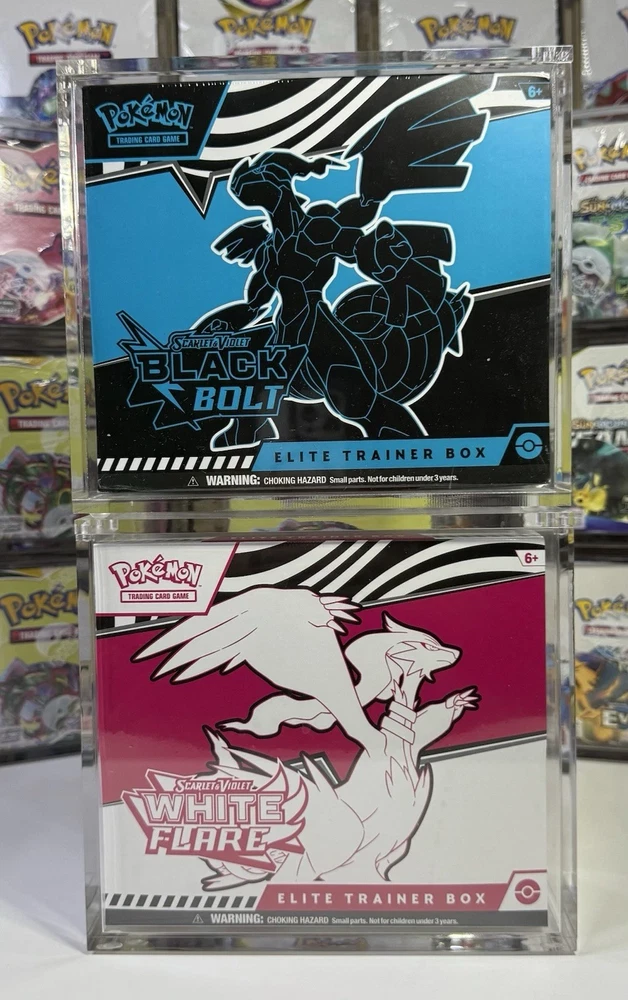 Internal dimensions:19cm*9cm*16.8cm This fits any modern English Pokemon booster box (XY, Sun & Moon, Sword & Shield, Scarlet & Violet, etc.) (IT DOES fit modern Pokemon center ETBs, except crown zenith and anniversary ) Each display case is NEW and bubble wrapped to protect its surface for maximum protection during transit. - The display case is made with crystal clear archival safe acrylic. ALL AROUND 5mm thick which provide a crystal clear premium look and blocks UV rays. - The magnetic top features 6 larger style magnets which allow for a firm hold to protect your valuable booster box collection. - Designed with a perfect fit, breathable space on both sides for those annoying booster boxes where the plastic seal sticks out. The last thing you want is tearing the plastic seam while casing your booster box. - Essential rubber feet which makes for a beautiful display when multiple cases are stacked. Last thing you want is a mountain of 4 ETBS stacked and then falling because they glide off! - No assembly or screws required. Don’t fall prey to having to build something you already paid for! Watch video for seamless use! This fits any modern English Pokemon booster box (XY, Sun & Moon, Sword & Shield, Scarlet & Violet, etc.) (IT DOES fit modern Pokemon center ETBs, except crown zenith and anniversary ) Each display case is NEW and bubble wrapped to protect its surface for maximum protection during transit. The video has an explanation of our thought process in designing this product and how it looks when stacked. This product is for the acrylic display case only. It does not include the booster box itself. As always thank you for all our loyal customers, I love seeing peoples collections GROW and beautifully displayed! *sale is for (1) acrylic case only, ETBs are not included or for sale*