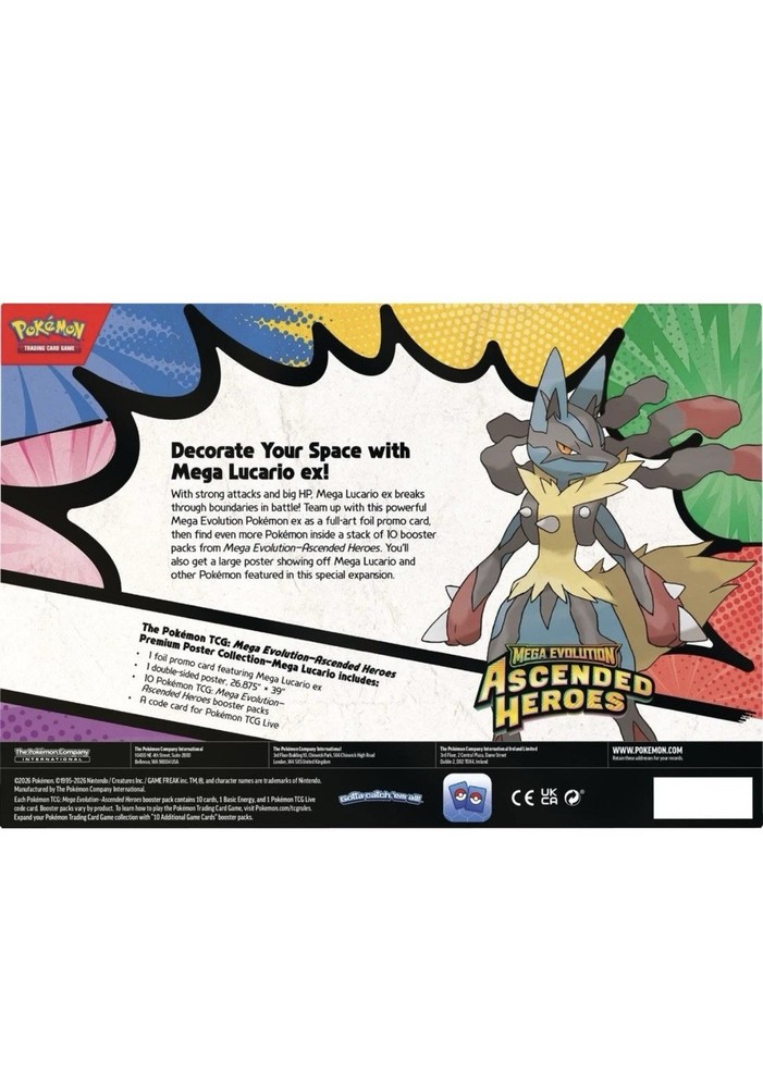 The Pokemon Mega Evolution: Ascended Heroes Premium Poster Collection Box is a special edition product from Pokemon USA featuring booster boxes of Pokemon Trading Card Game cards from the Ascended Heroes set. This collectible item is perfect for fans of the Pokemon franchise looking to enhance their card collection with cards from the Mega evolution feature. The premium poster collection adds an extra dimension to the experience, making it a must-have for any Pokemon TCG enthusiast.