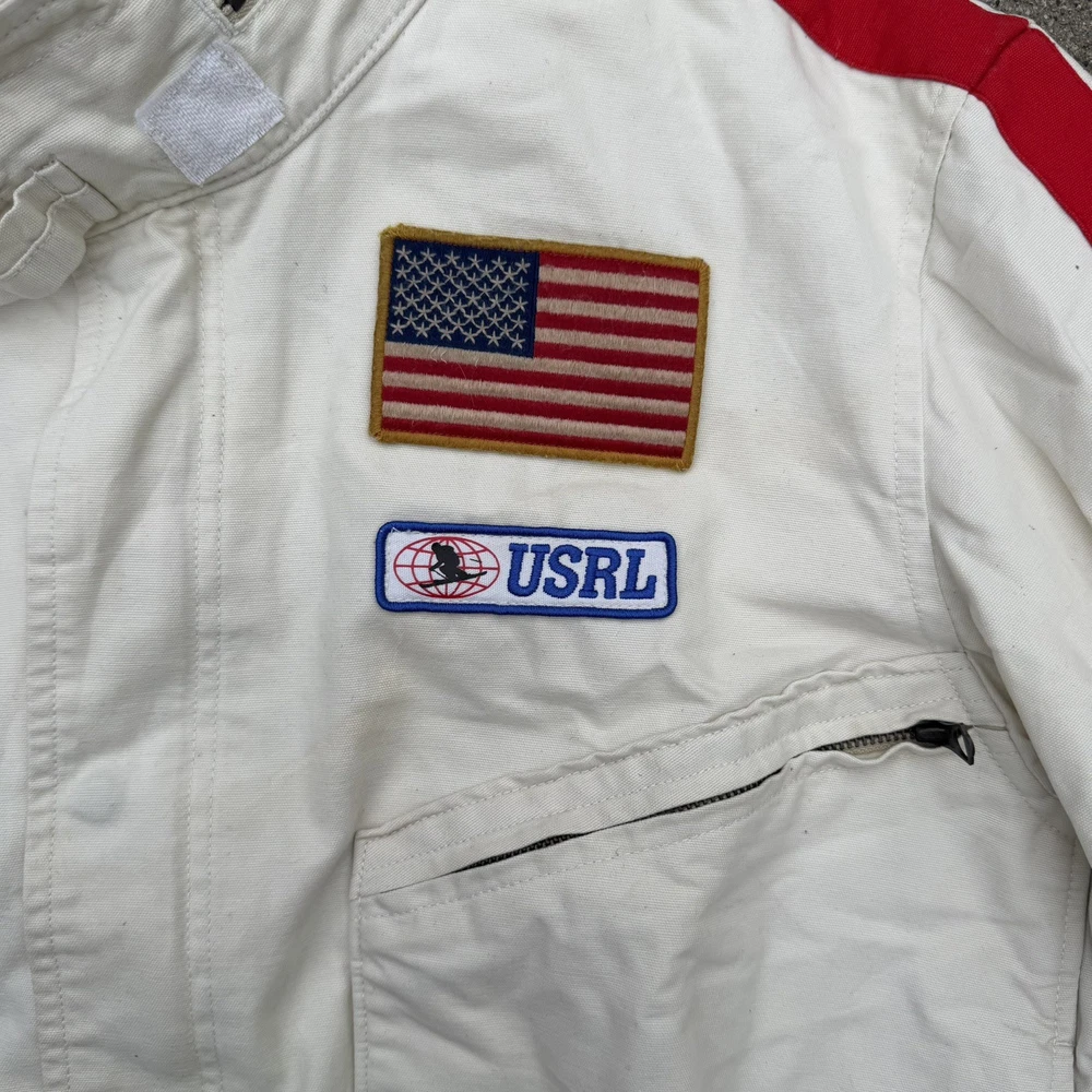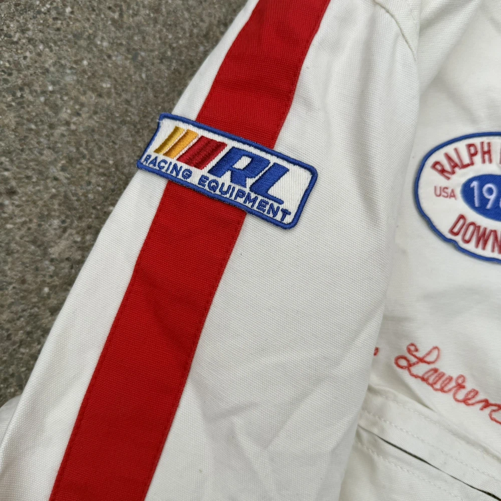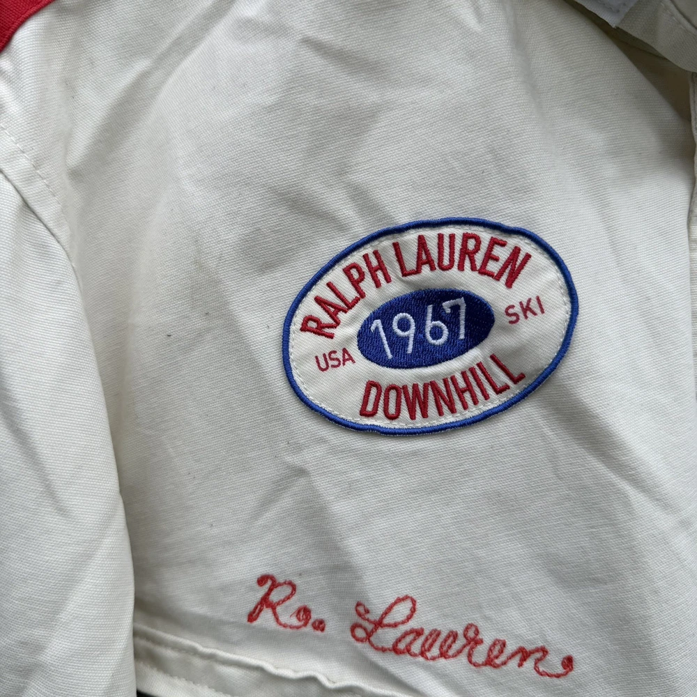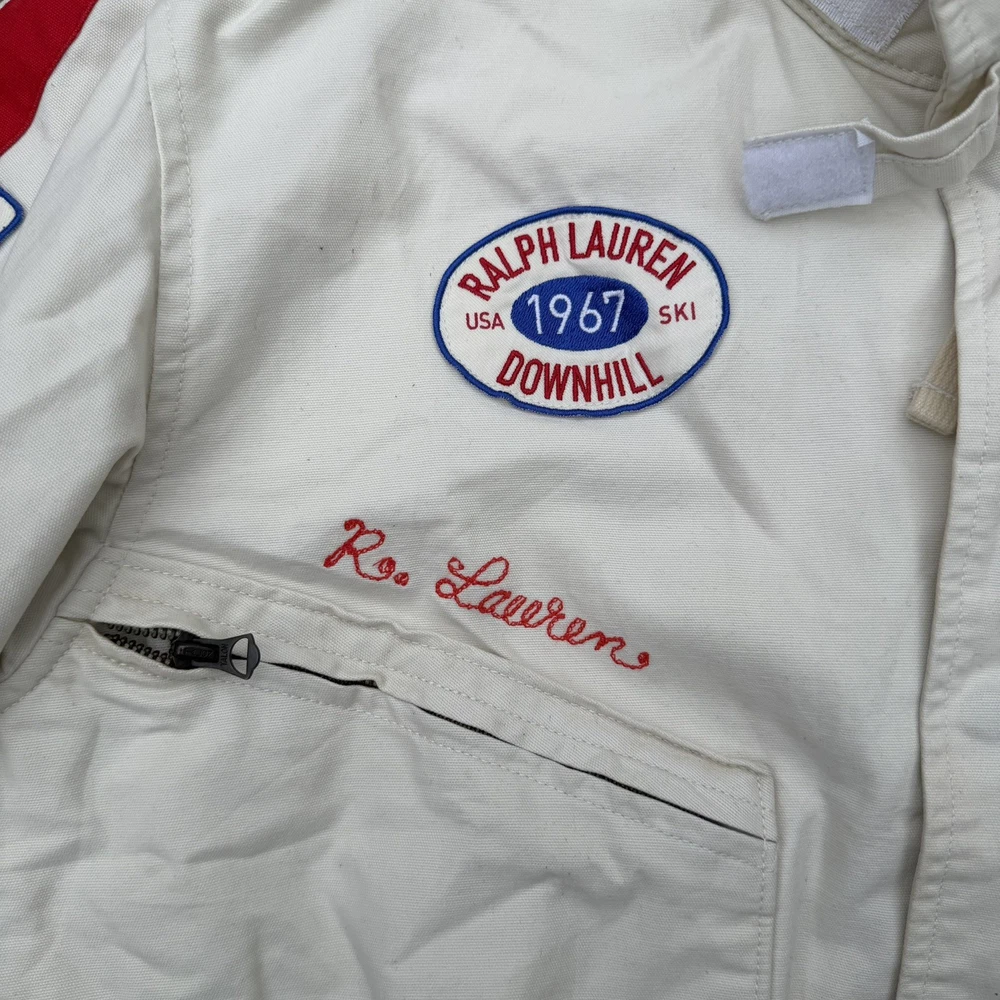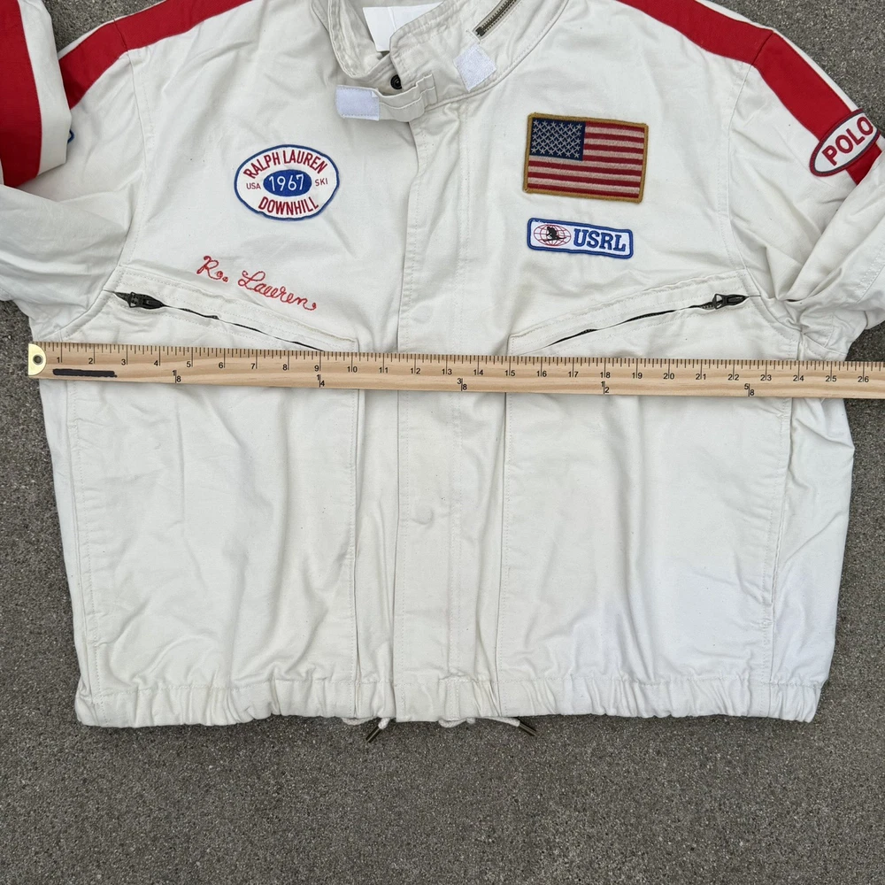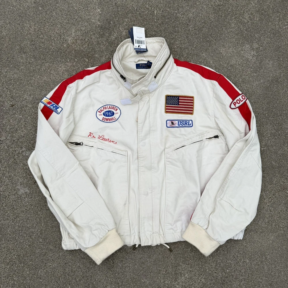 Authentic Polo Ralph Lauren “1967 Downhill Ski” racing jacket, an archive-inspired piece drawing from vintage alpine and motorsport uniforms. Features bold embroidered patches, signature red racing stripes, and classic Polo utility construction. This is a true Polo archive-style jacket with strong collector appeal. Original hang tags are still attached; however, this item is NOT brand new and shows signs of prior handling/storage. • “Ralph Lauren 1967 Downhill Ski” embroidered chest patch • Embroidered U.S. flag and USRL patches • Red racing stripes down sleeves • “Polo” sleeve patch • Script “R. Lauren” embroidery • Zip chest pockets • Ribbed cuffs • Adjustable drawcord hem • High collar with closure tabs ⸻ SIZE Tagged size: Men’s XXL ⸻ CONDITION (PLEASE READ) Pre-owned / vintage condition. Tags attached but NOT brand new. • Visible wrinkling throughout from wear or long-term storage • Light marks and minor discoloration visible in areas (see close-up photos) • Fabric, patches, embroidery, and structure remain solid • No major tears, holes, or missing components This piece has clearly been handled or worn, despite retaining original tags. Condition is consistent with an older collectible Polo jacket rather than a deadstock item. ⸻ AUTHENTICITY 100% authentic Polo Ralph Lauren. Original labels, patches, and construction consistent with genuine archive Polo outerwear. • Vintage item sold as-is • No returns due to fit or condition • Please review all photos carefully before purchase