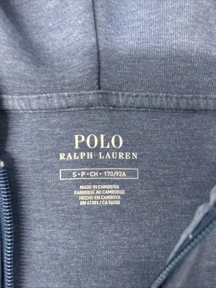 This Polo Ralph Lauren Men's Small Navy Blue Double Knit Full Zip Hoodie is a must-have for any fashion-savvy man. The hoodie features a classic fit, long sleeves, and a full zip closure with an embroidered logo accent. It is made of a comfortable and durable fabric consisting of 66% cotton and 34% polyester knit together. The hoodie comes in a stylish navy blue color and has a colorful and classic design that is perfect for any occasion. It also features hooded and pocketed compartments, making it a practical and functional addition to any wardrobe. This hoodie is machine washable and was manufactured in Cambodia between 2020-2029.