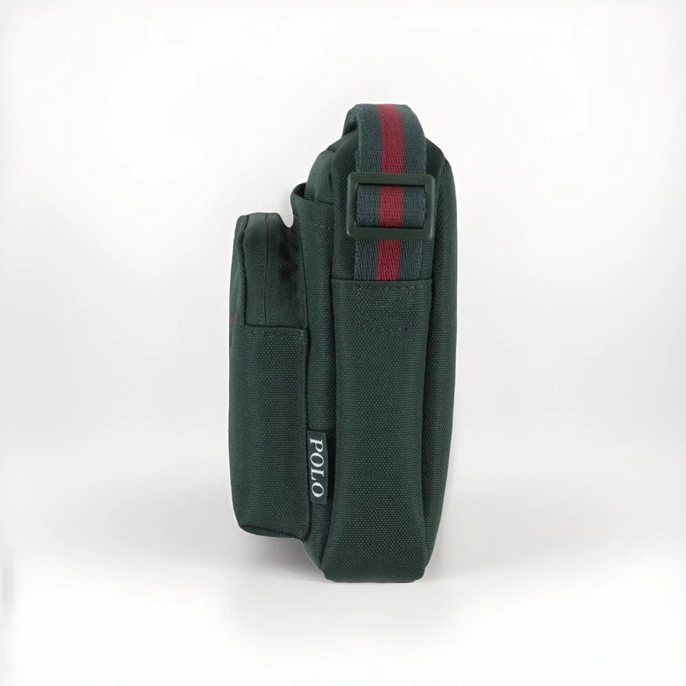 This Polo Ralph Lauren belt bag and fanny pack is the perfect addition to any festival-goer's outfit. With its vibrant green color and bold logo design, this bag is sure to turn heads. Made from durable polyester, it is designed to withstand the elements and keep your essentials safe and secure. The bag features a spacious interior with enough room to carry all your festival essentials, including your phone, wallet, and sunscreen. Its adjustable strap allows you to wear it comfortably around your waist, while the zip-top closure keeps your belongings secure. Whether you're heading to a music festival or a beach party, this Polo Ralph Lauren bag is the perfect accessory to complete your look.