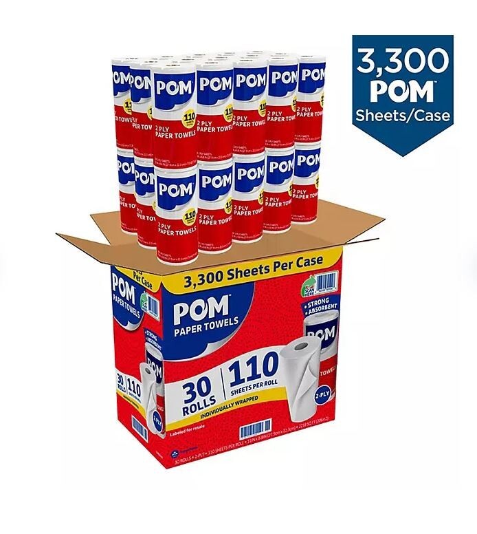 GLOBAL PRODUCT TYPE: Towels & Wipes-Perforated Paper Towel Roll APPLICATION: General Purpose TOWEL/WIPE TYPE: Perforated Roll COLOR(S): White MATERIAL(S): Paper ROLL LENGTH: 2,218 sq. ft. NUMBER OF TOWELS/WIPES PER CONTAINER: 3300 NUMBER OF PLIES: 2 QUANTITY: 30 rolls per carton WIDTH: 11" LENGTH: 8.8"