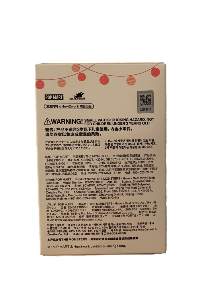Original/Licensed Reproduction:OriginalSeries:Have A SeatAge Level:17 Years & UpBrand:Pop MartType:Action FigureCountry/Region of Manufacture:ChinaColor:MulticolorMaterial:PlushCharacter:The Monster