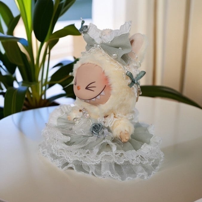 17CM POP MART Labubu Plush Doll Satin Wedding Dress Costume Only