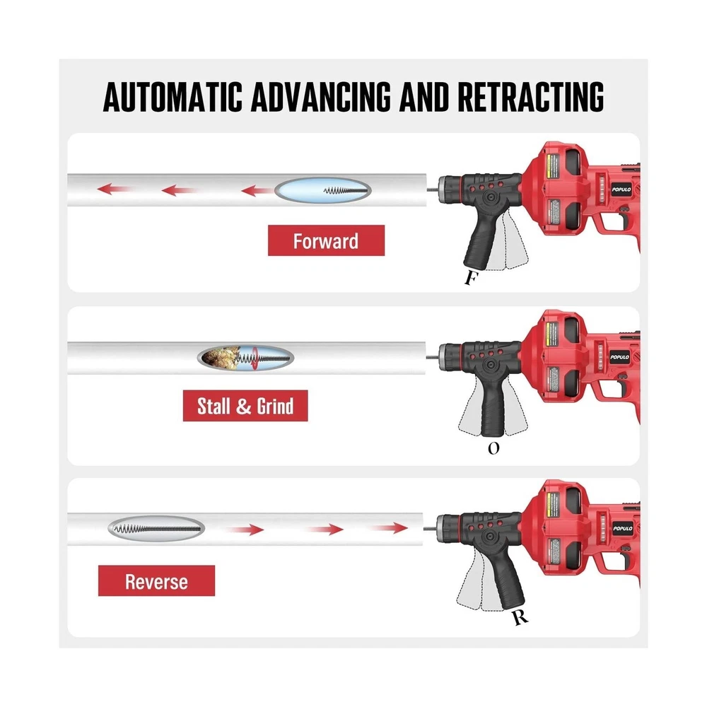This POPULO Electric Drain Auger is the perfect tool for removing drain clogs and sink/toilet drains. With a 25 ft cable length and inner core cable type, it is designed for efficient and quick cleaning. The tool is made by POPULO, a trusted brand in the industry, and has a rated power of 1/8 hp. The cable thickness is adjustable and can be found in the product description. The unit type is in feet and the tool is made for use in business and industrial settings, as well as for light equipment and tools. The model is POPULO and the country/region of manufacture is unknown. This drain snake is an essential tool for any plumber or handyman, and it will make your job easier and more efficient.